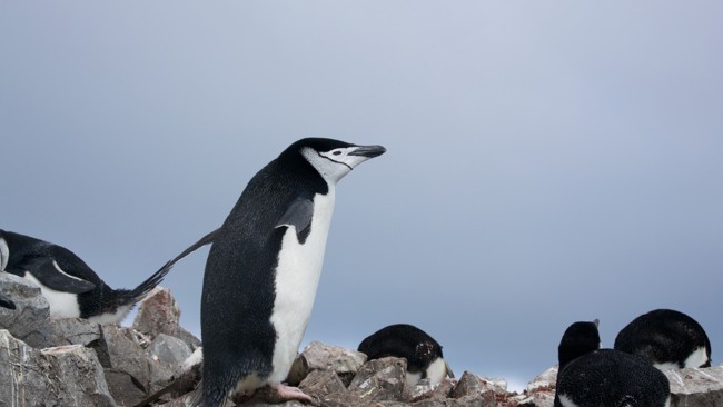 They love a nest with a view. Chinstrap penguins nest high on hillsides and islands in Antarctica. They form penguin highways walking in groups from the water to their nests during the breeding season. Be sure to give way and let them pass before you cross their highways!
