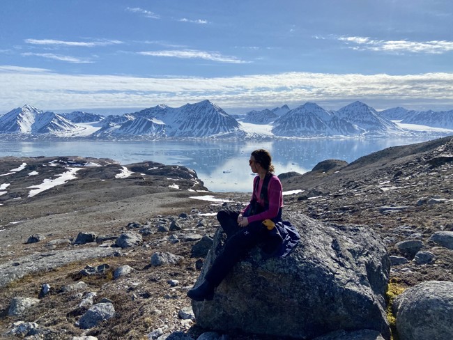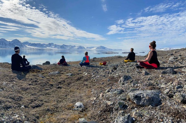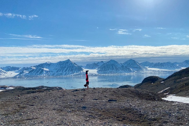 Another very strong memory was when we hiked up a hill in a place called Ossian Sars. On our expedition, we were lucky enough to have a yoga instructor on board. Once at the top, the yoga instructor, Isabel asked if anyone would like to join her in a shorter meditation. Several of us sat down on the ground and with our legs crossed and our hands on our knees, Isabel led us in a calm and quiet meditation. Of course, it had to be a meditation where we didn't close our eyes, because you did not want to miss a second of the view we had in front of us. It was a very peaceful moment together.