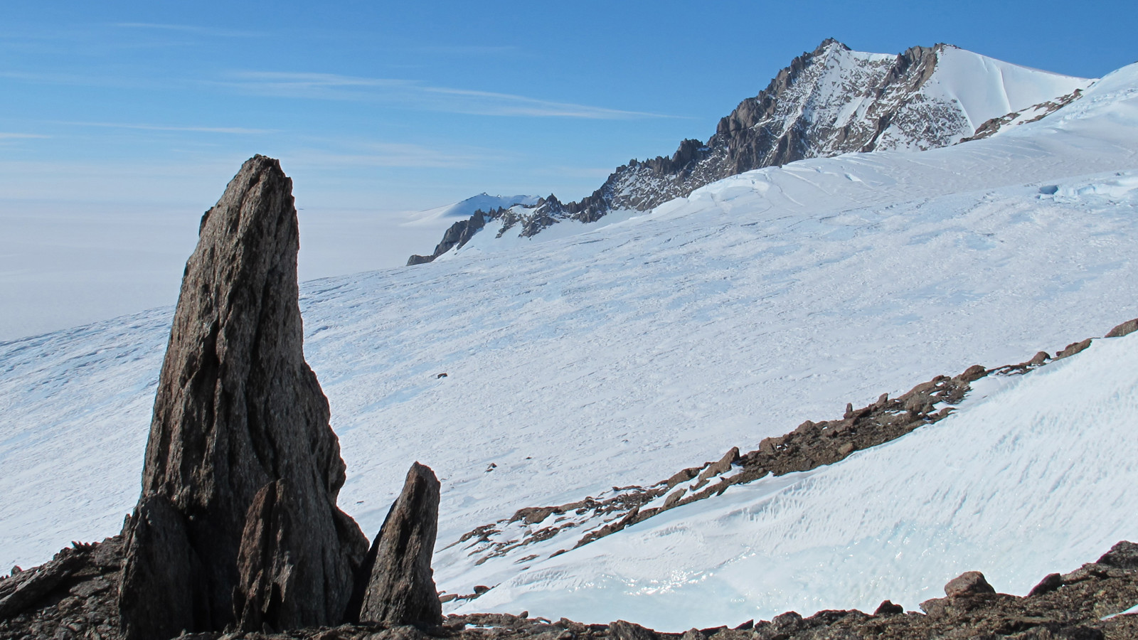 Dronning Maud Land is one of the least studied regions of Antarctica in terms of variations in ice sheet thickness and dynamics. There are plenty of potential study sites in the mountain ranges, whose peaks are sticking up through the ice sheet 200–300 km from the coast.