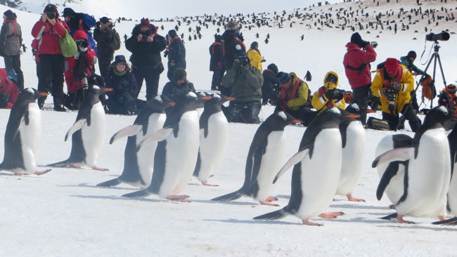 To just sit and watch these penguins is absolutely fascinating. From behind, they really all look rather silly as they rock their way forward. But never underestimate a penguin, they are incredibly smart! When they build their nests of stones, where they eventuallt will lie and incubate, they are not unlikely to steal from their neighbour when tirelessly collecting stones - they normally only carry one stone in their beak each time. On this trip we also had the incredible luck to experience the so-called "penguin march" on Cuverville Island, Antarctic Peninsula, which takes place once a year and only for a couple of hours. One of PolarQuest's most experienced guides who has travelled in the Arctic and Antarctica for 25 years experienced this now for the first time while I managed to ecperience it during my very first trip down here - no wonder I became so fascinated by these birds. We sat for about an hour and a half while the penguins rounded us up in their hunt for a place where they could build their nests. Five to six in width but sometimes there were some who got tired and ran off. A powerful and completely unforgettable experience.