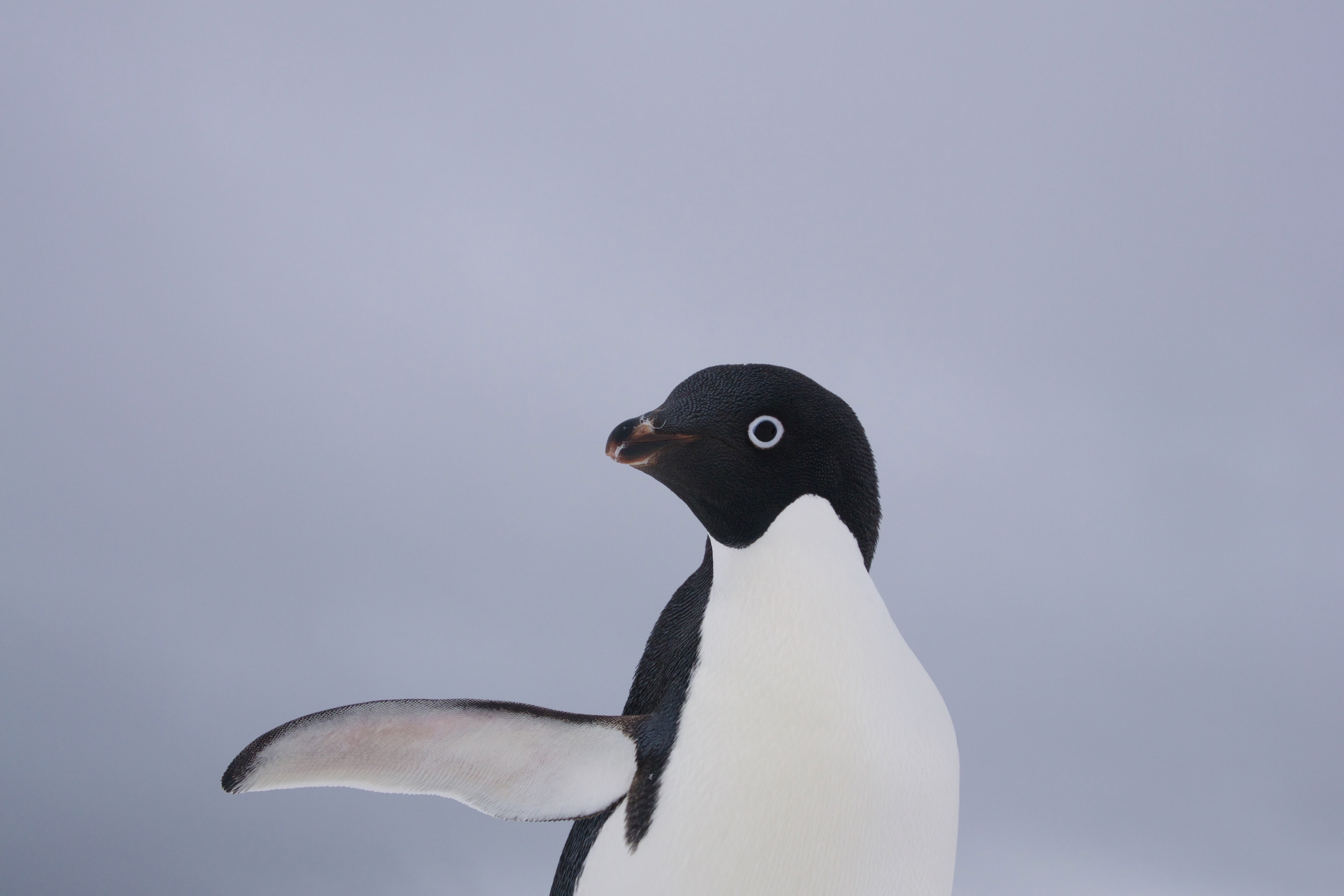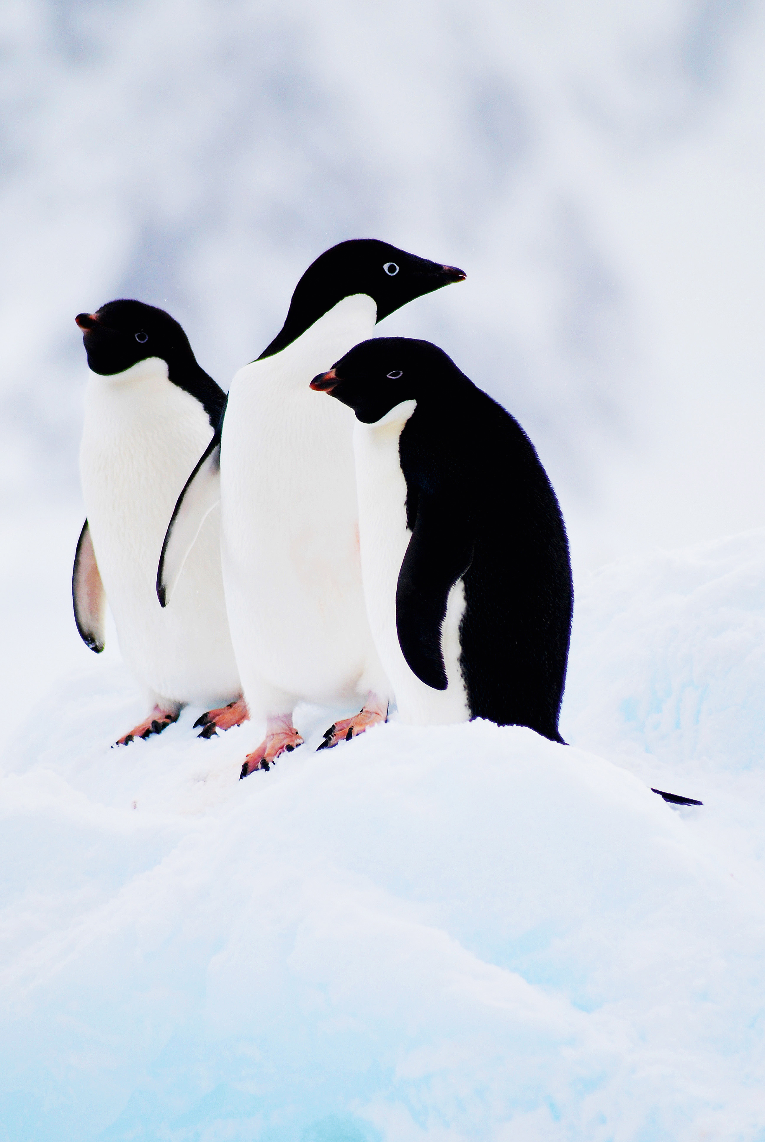 The Adélie penguin lives along the entire Antarctic coast and is one of the southernmost bird species in the world. They thrive in the cold, and during winter they migrate to the open waters around the pack ice.