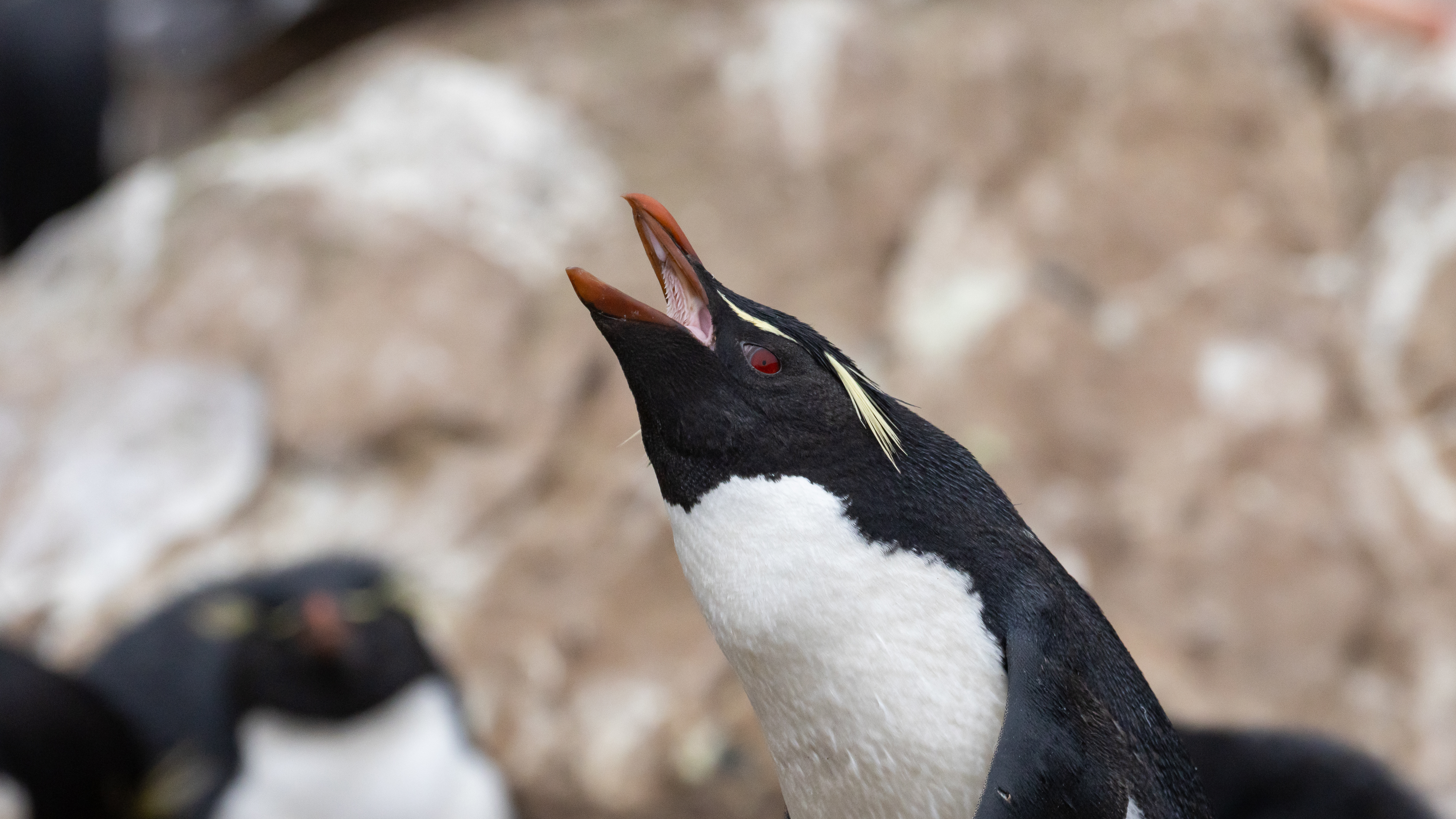 The rockhopper penguin’s international name could not be more fitting. With quick, powerful jumps, it makes its way over boulders and up steep cliffs on the way to its nesting sites.