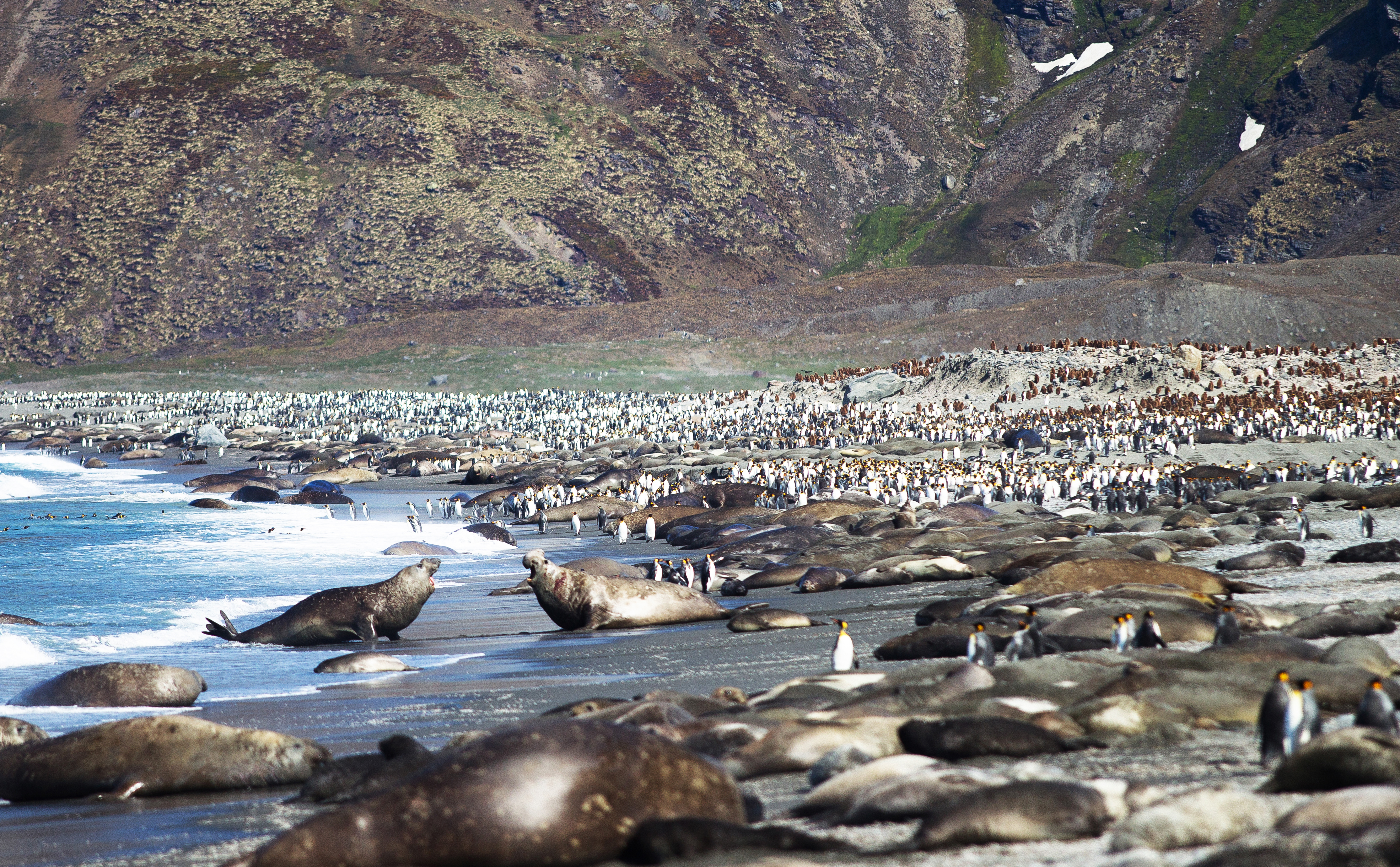 Now the sight was set on South Georgia and my heart was beating a little bit faster thinking about David Attenborough's nature films. I must say that my expectations were sky high. When we finally got there and stepped ashore, we were greeted by the sound of thousands of king penguins trumpeting and whistling and from the harem fighting giant elephant seals. I had to pinch myself in the arm.