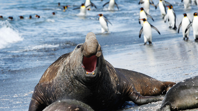 Elephant seals spend about 80–90% of their lives in the water, coming ashore only to mate, give birth, and molt.