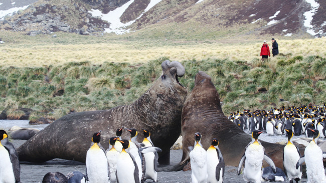 Watching the gigantic males defend their harems or the elephant seal pups curiously approach with their large, dark, saucer-like eyes is a wildlife experience beyond the ordinary. You can witness all of this on the beaches of South Georgia during our grand Antarctic expedition.