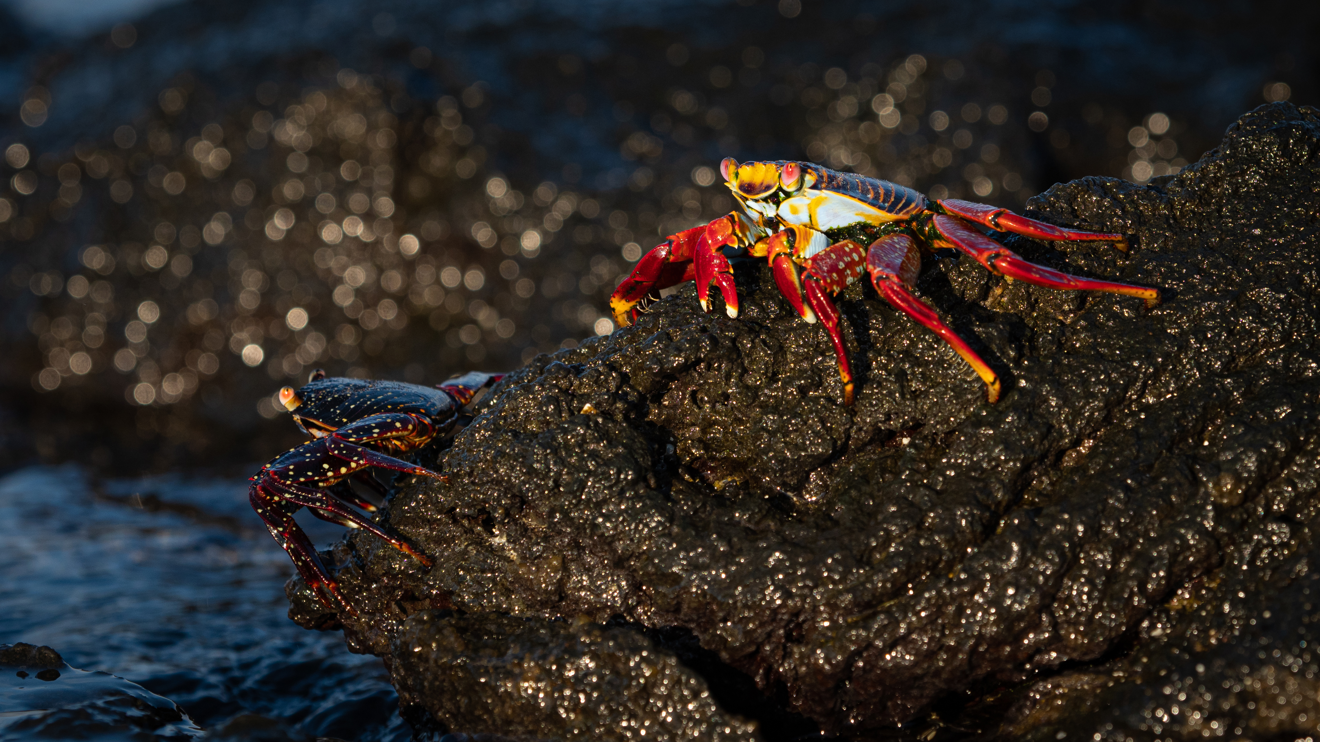 When the sun started to set, we made a landing at magical Punta Espinosa. Here everything happened at the same time. Sea lions played in the shallow lagoons, iguanas lay down to catch the last heat of the day, the Galapagos cormorants paid court to each other on the cliffs and out in the sea the blue footed boobies dived for fish. This is Galapagos at its best.