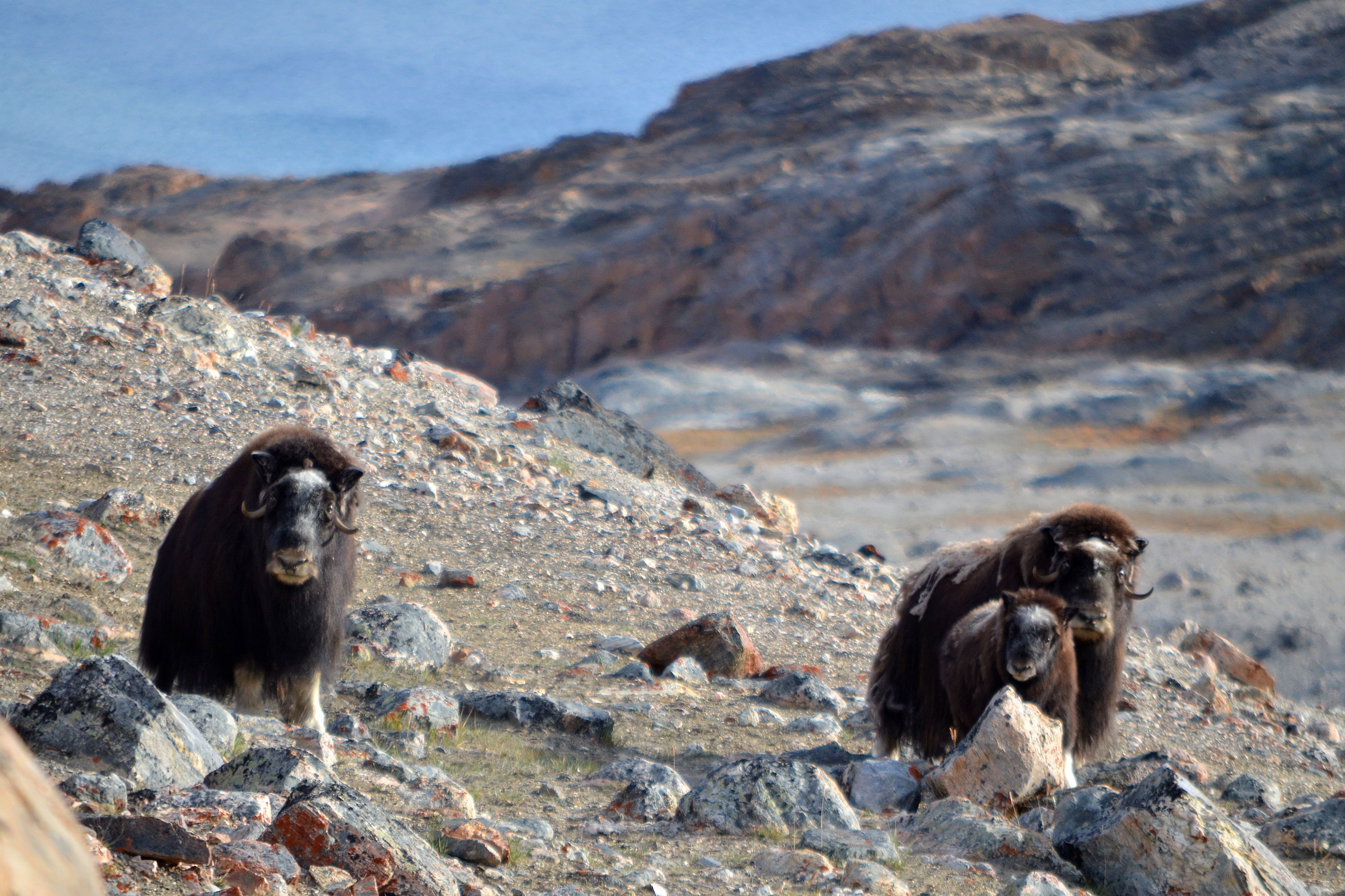 The closest relative they have are sheep and goat. The Mysk ox run upwards just like a goat and have the same small, round dropping.