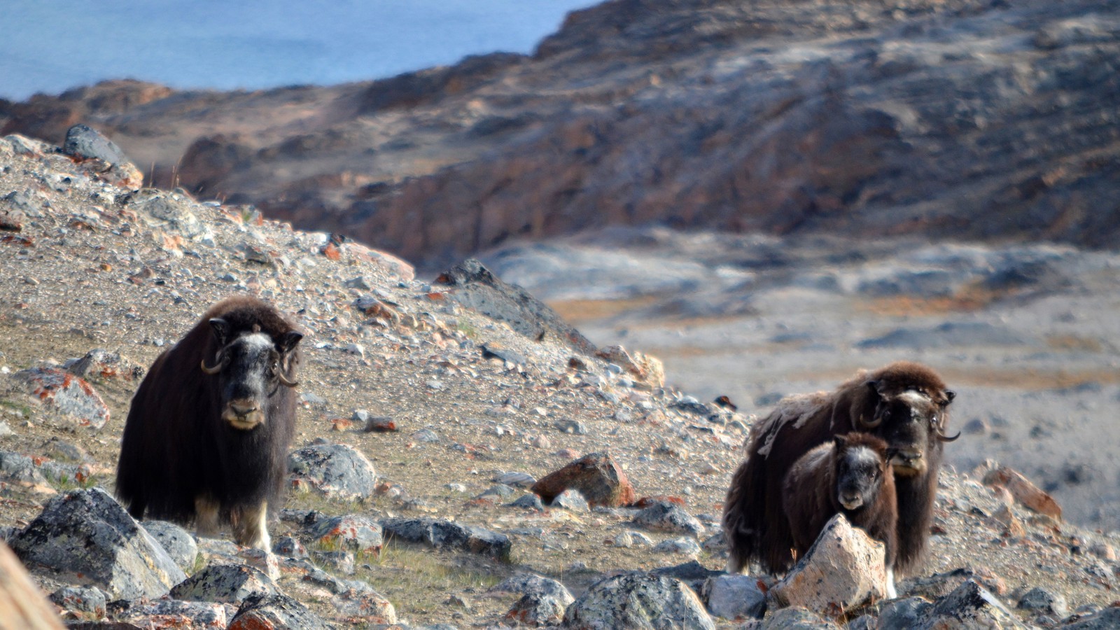 The closest relative they have are sheep and goat. The Mysk ox run upwards just like a goat and have the same small, round dropping.