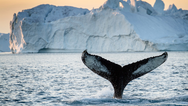 Disko Island, the largest island along the coast of Greenland, is nestled in the shimmering Disko Bay. Its lush and volcanic nature provides a striking contrast to the backdrop of sea and shiny icebergs. The environment also offers beautiful walks among unique rock formations, black sand beaches and untouched greenery. According to Greenlandic folklore, the unique flora is due to the fact that the island was once moved here from the south by two kayaking salesmen. A witch's spell is said to have caused it to remain. In fact, it is the presence of hot springs that makes the vegetation richer than in other places at the same latitude. The Greenlandic name for Disko Island is the same as the island's only settlement – Qeqertarsuag. The small town, with its barely a thousand inhabitants and location on the southern coast of the island, is by many considered to be the most photogenic in Greenland. It is not hard to understand when you see the multi-coloured houses against the mighty red-tinted basalt rock wall. At the top is the Lyngmark glacier, which is covered in snow all year round and offers a wonderful view. Many whales thrive a little extra in this corner of Disko Bay, which makes the experience even more special.