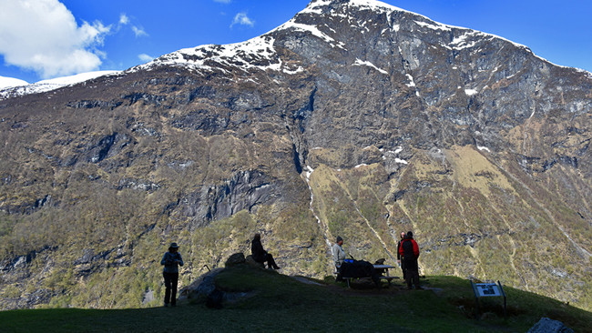 Yesterday we had a nice day in Geirangerfjorden. Half the group walked up to the Skageflå farm and had a magnificent view of the fjord. At the same, they were able to learn what life as a goat farmer in this remote area is like.