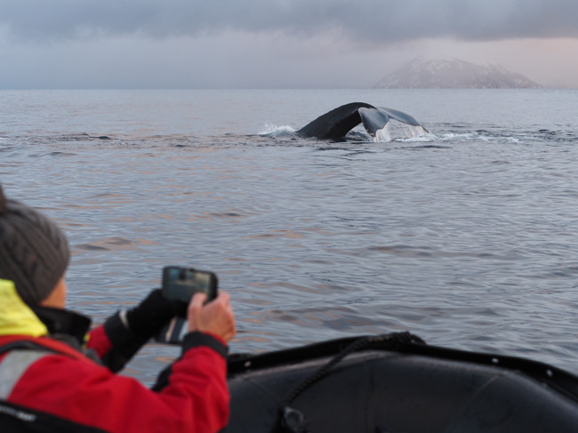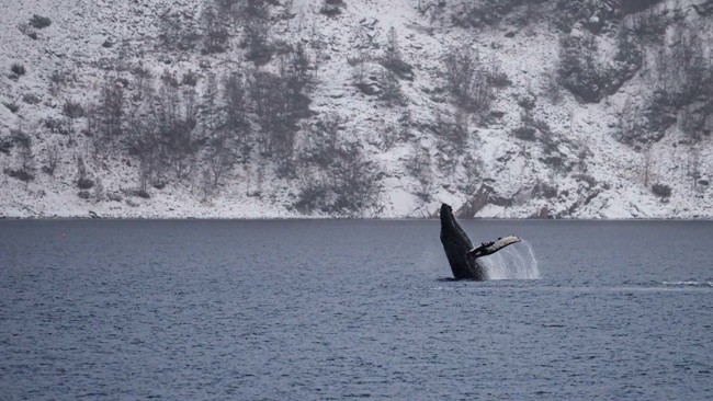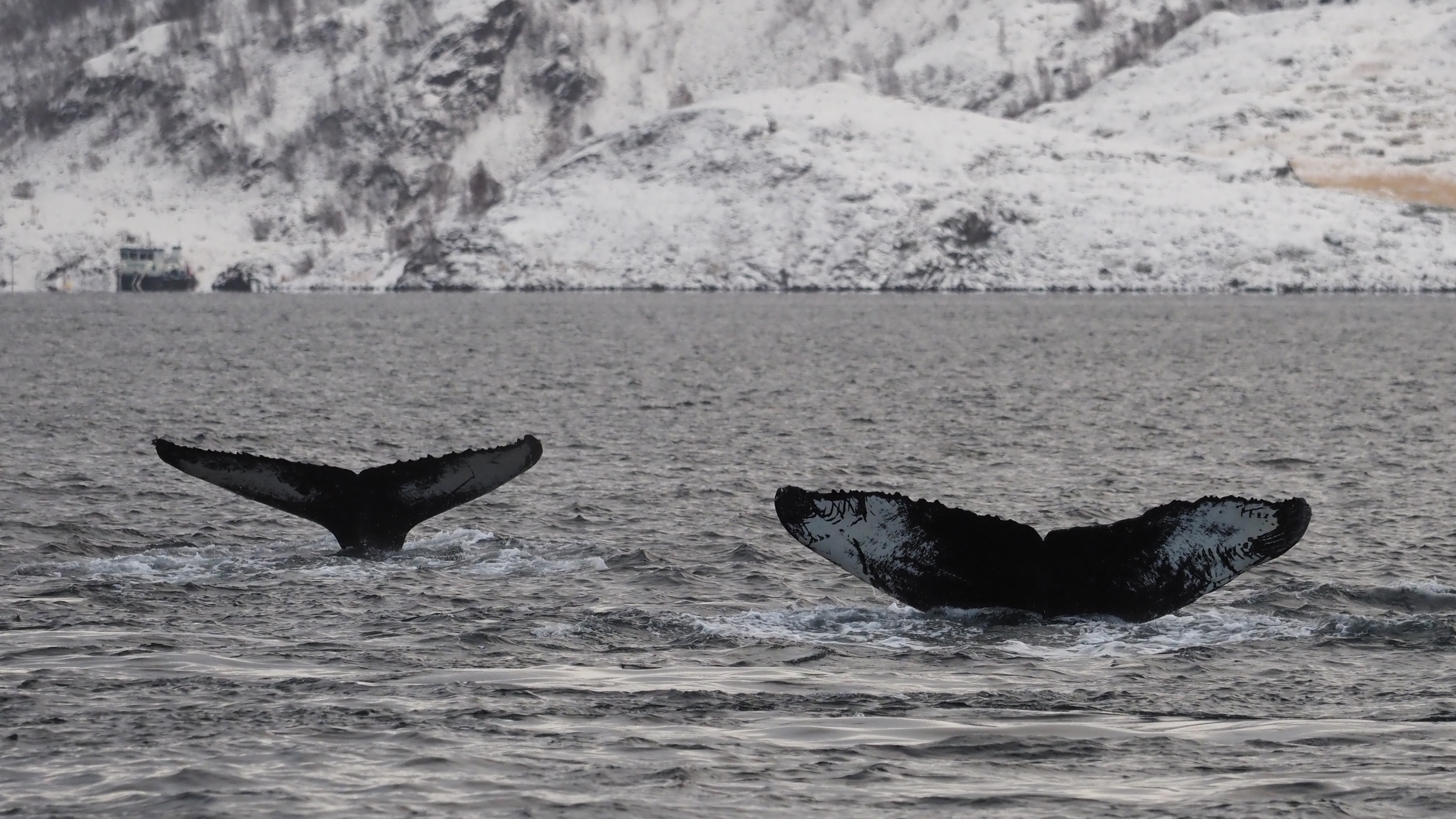 Not one, not two, not even five. A horde of over 25 strong Humpback whales circled around, feeding upon the throngs of helpless herring congregating in the fjord. The herring thought they were safe, far to the east of Kvænangen, the traditional hunting grounds of the savage humpbacks.