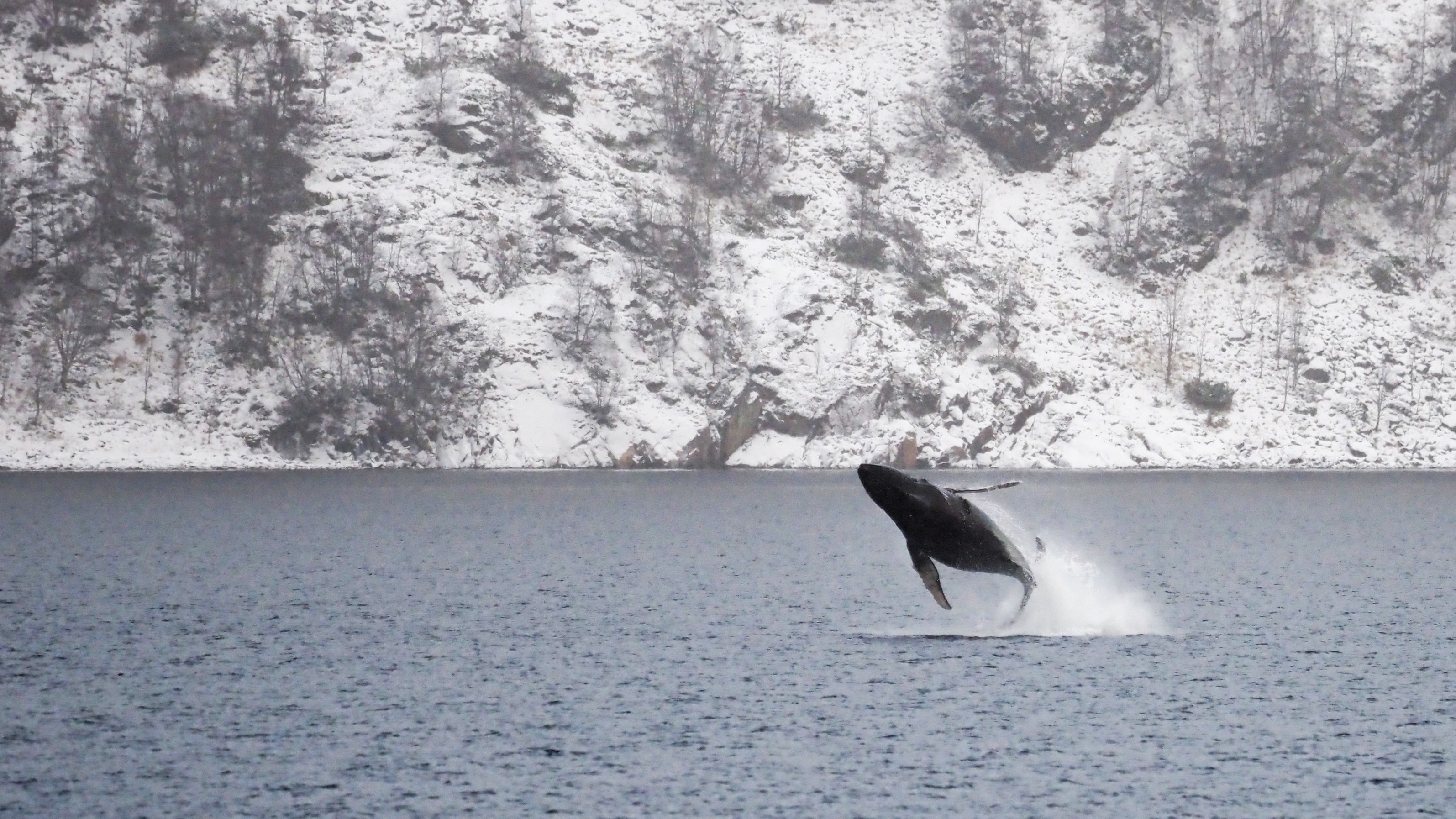 As we sailed deep into the Øksfjorden, nearing its end, the landscape remained empty. Turning back at the midway point, a sense of anticipation gave way to excitement as a series of blows finally appeared—Humpback whales!