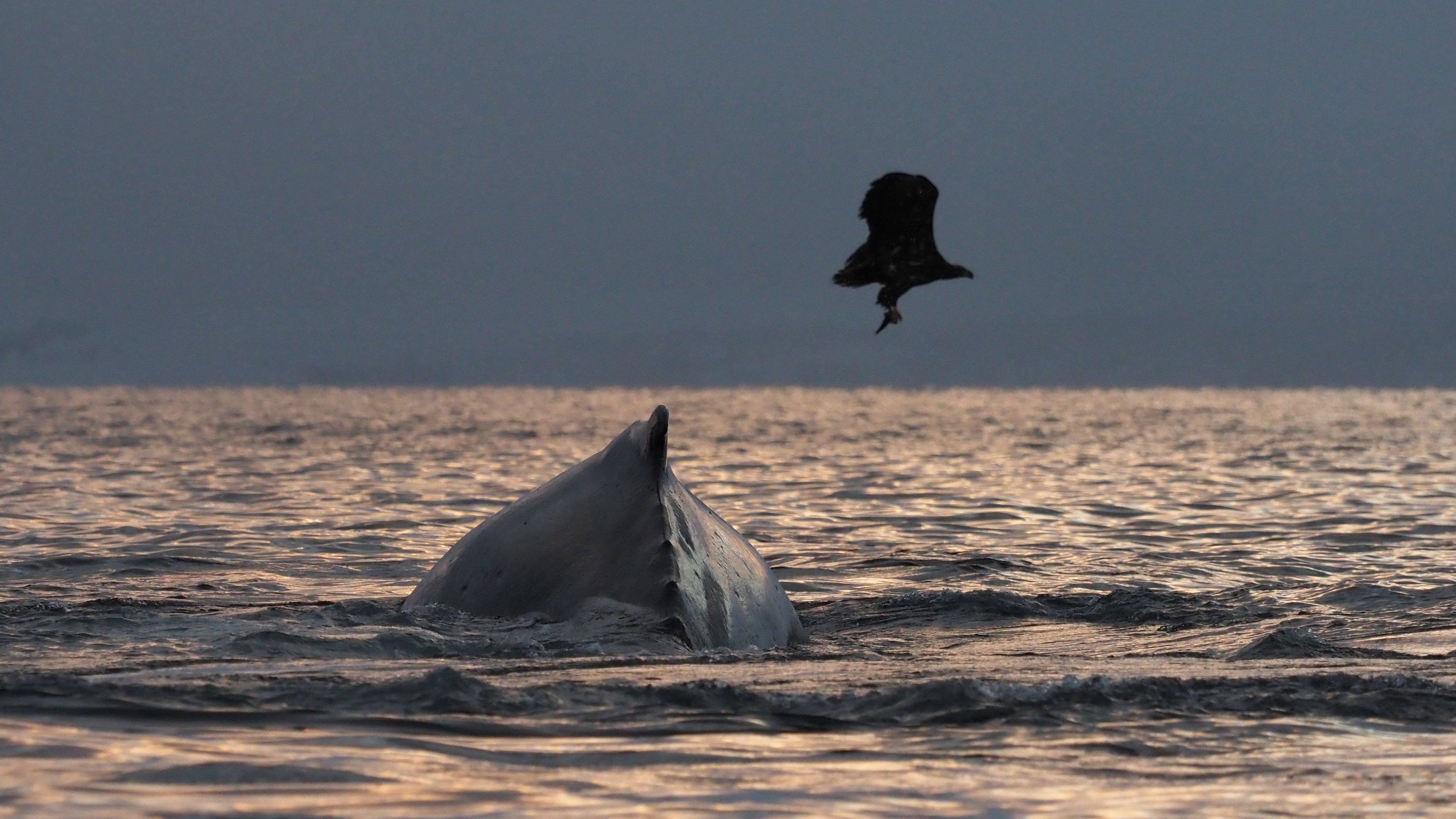 As the light broke its way through patches of clearness in the sky, the odd orca was seen here and there. Scouts, patrolling for herring. So early it was, that even several humpbacks were spotted, sleeping at the surface like large logs.