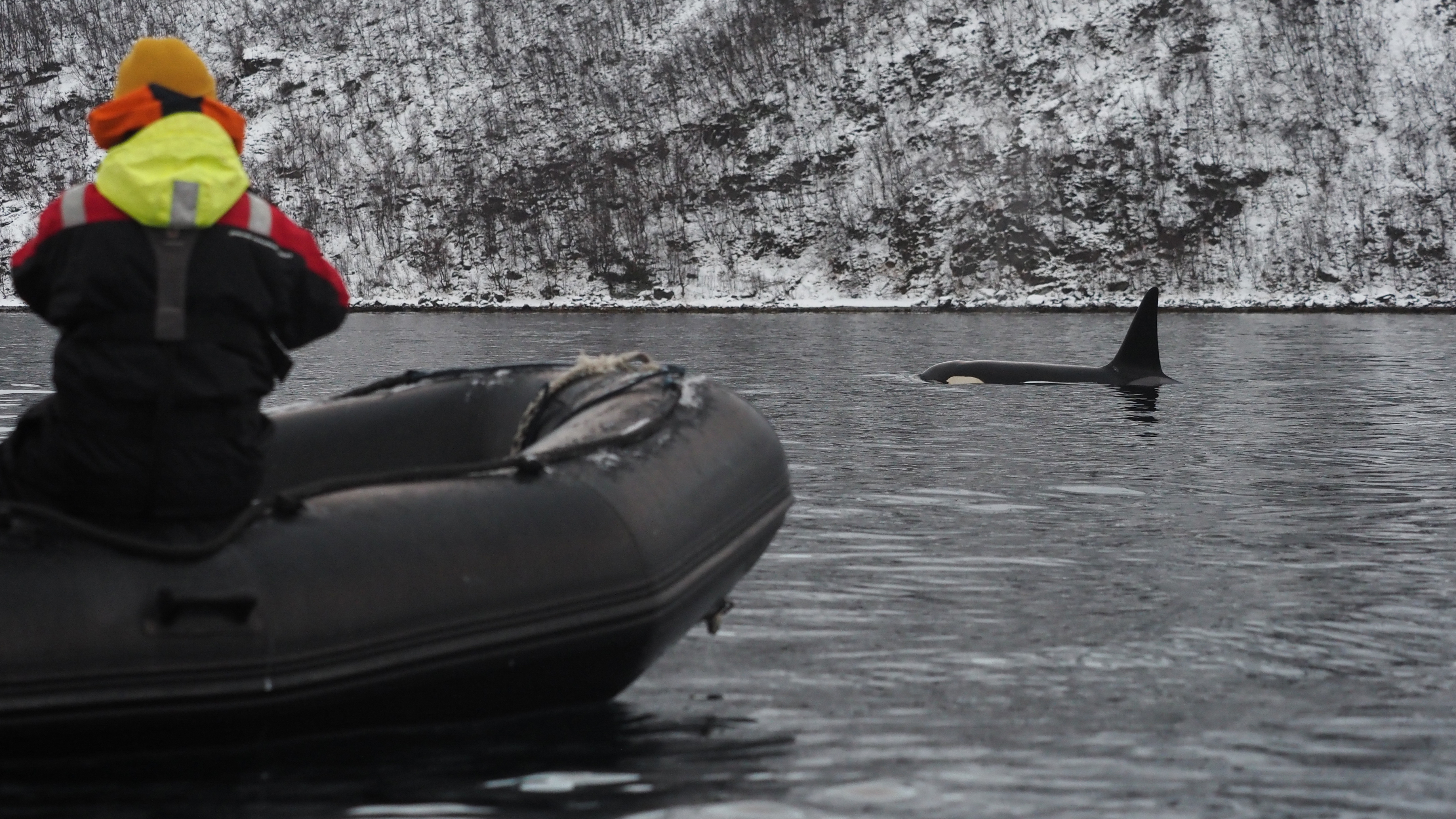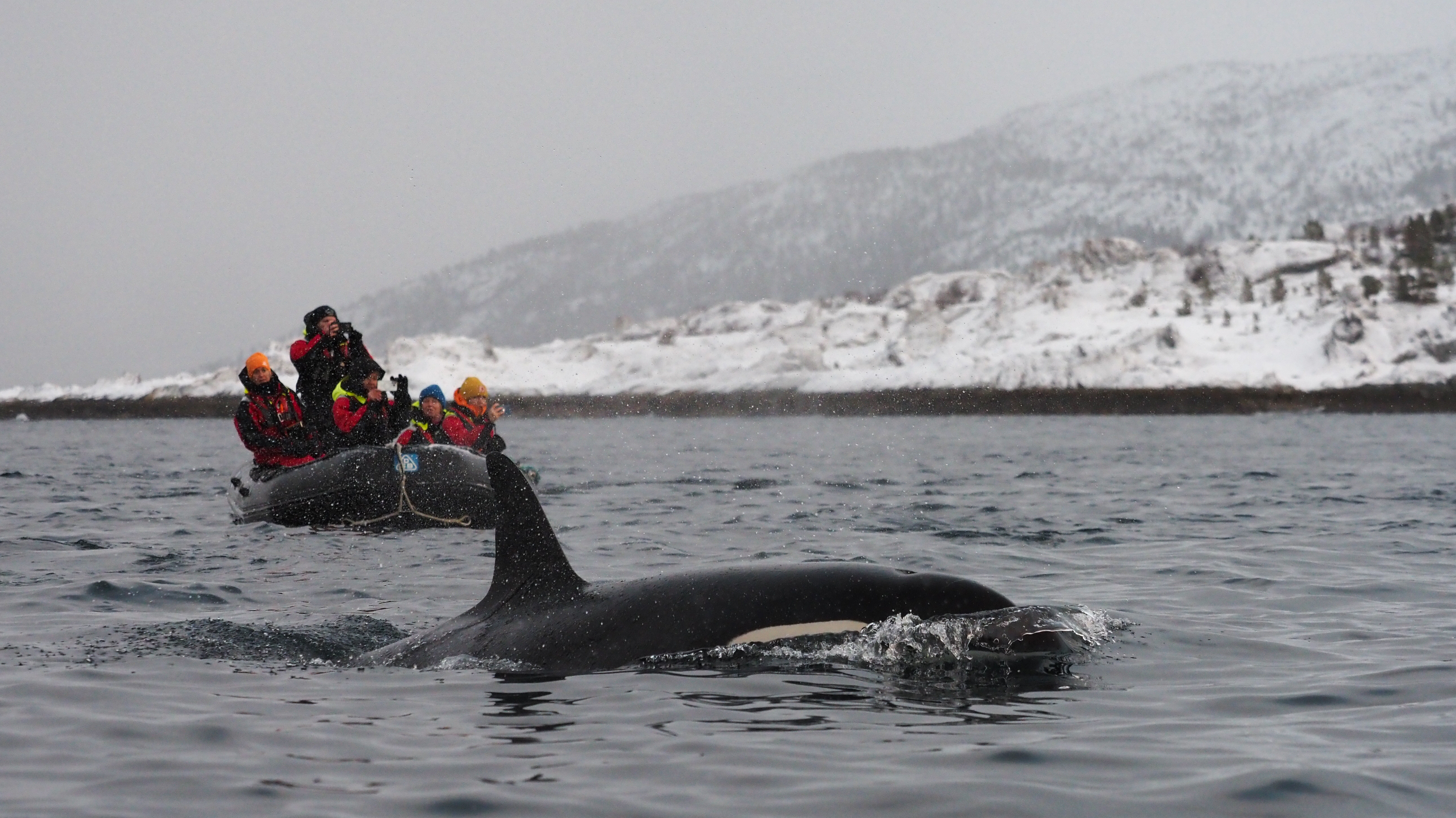 Orcas swam left, right, and center of the Zodiacs, ingesting a percentage of the 70-kilogram daily average of herring needed to sustain such a large mass of brain and brawn.