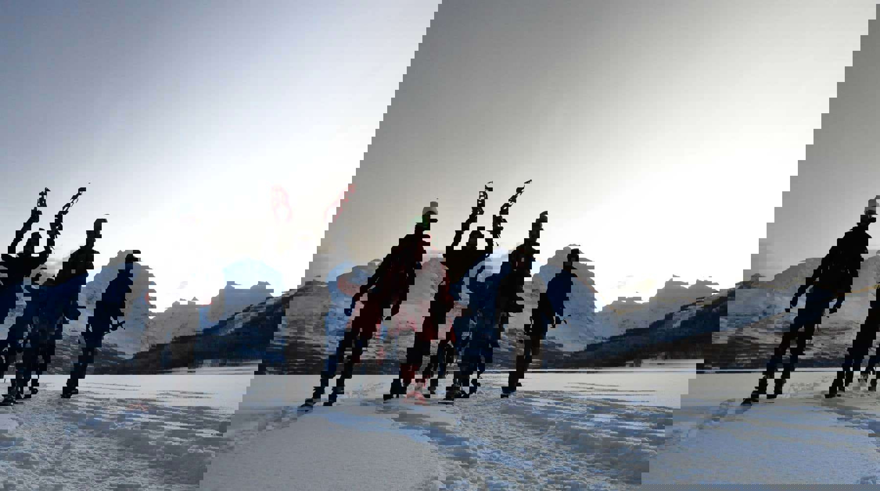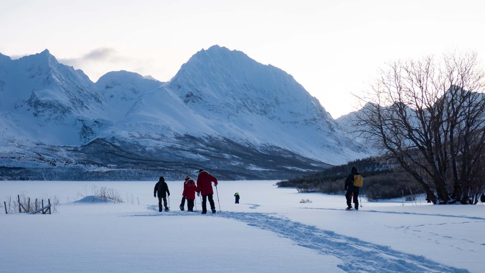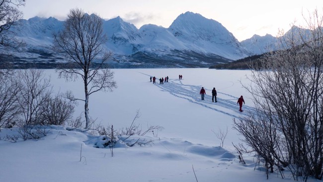 We started today's adventure with a landing at Jaegervatnet, and a hike with snowshoes in a calm and quiet pace. The sun shone over the landscape and the snow absorbed all the sounds - all the stress from back home was now gone!