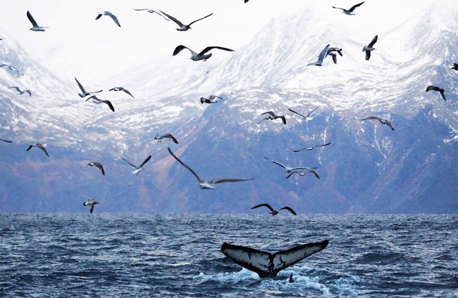 Orcas were not the only ones to circulate the ship in their search for herring. Among them there were a few humpback whales too, and during our trip we would experience several thrilling encounters with these impressive giants of the sea.
