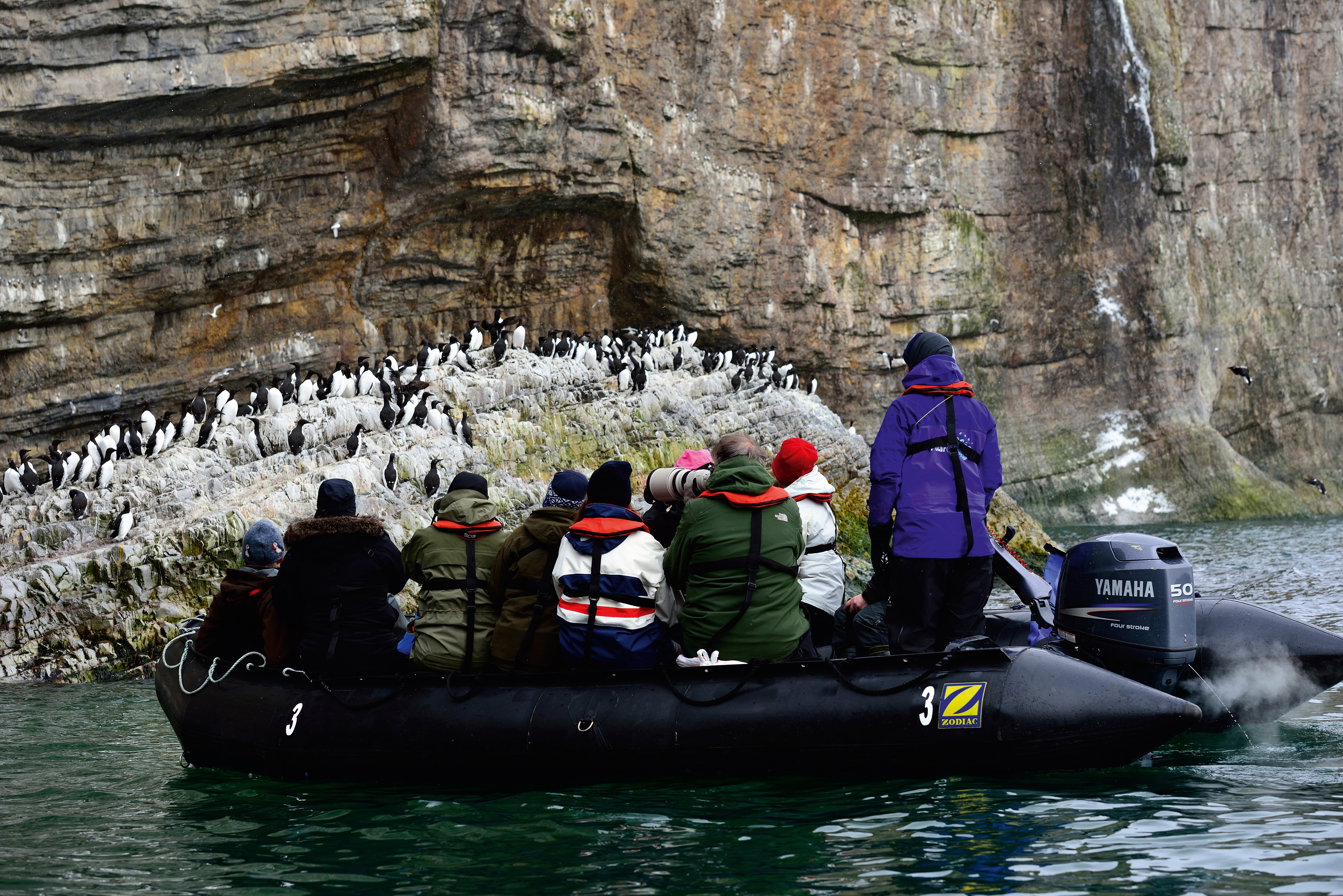 Next, we head to the legendary Bear Island, located midway between Northern Norway and Svalbard. Its exposed location makes landings rare, but if the weather permits, we can enjoy an exciting Zodiac cruise among dramatic cliffs, spires, towers, and caves.