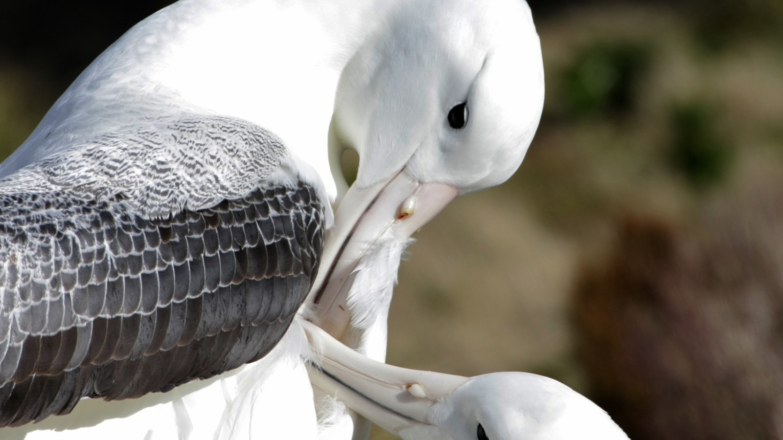 And here the first glimpses of the royal albatrosses - spread out white dots on the slopes. The day grew nicer, the sun dried our clothes, the land emerged out of the grey in brighter colours and nuances. The fjords’ arms glimmered magically blue beyond fields of tussock and bushes. And now the albatrosses awoke to life: even more of them swept in on a low altitude above us, courtship was seen in several spots. Magic is a word for the gently caressing way love is expressed between these giant birds! Cautiously they preen one another’s heads, gently they bow, proudly they spread their wings… There were moments for close observations, increasingly so as the afternoon elapsed. One of the highlights of our journey was handed to us by the beautiful Campbell island!