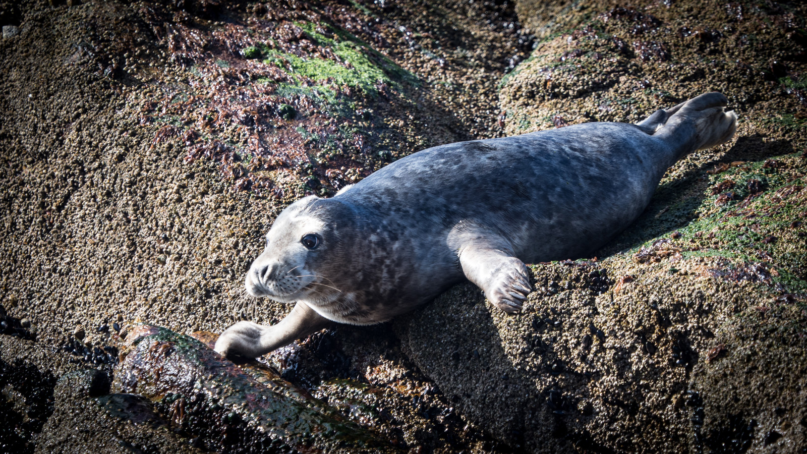 On this sparkling morning our Zodiac took us on a circumnavigation of Sula Sgeir's cliffs, in and out of its dramatic sea-caves and tunnels, and brought us face to face with the guillemots and gannets that nest crammed on ledges here by the thousand, while grey seals noted our passage intently from every rocky niche. A remarkable tradition, dating back many hundreds of years, is still practised here in the annual ‘guga’ hunt, when intrepid Hebridean men catch a quota of young gannets, a famous local delicacy.