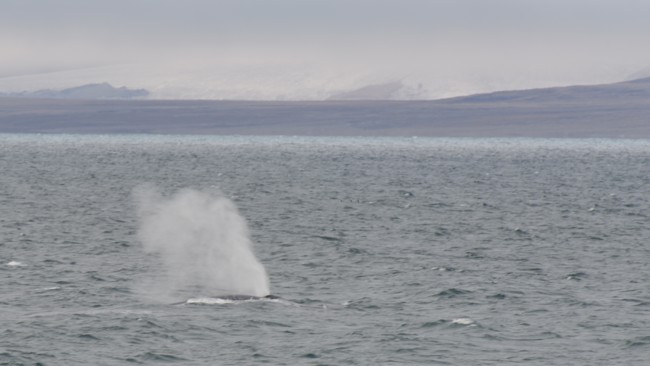 As we sailed south towards Smeerenburg glacier it really calmed down to almost no wind at all. Also, as we came close to the glacier we saw our first Polar bear on one of the islands! We were lucky to spend around three hours with that bear. At first on a distance as it was swimming around the ice floes hunting for seals, and then we got the opportunity to look at it closer as it walked up on land and showed itself in all its beauty. It was a healthy looking male. The day finished off with a very tasty dinner and no less than two birthdays that were celebrated with cake and candles.