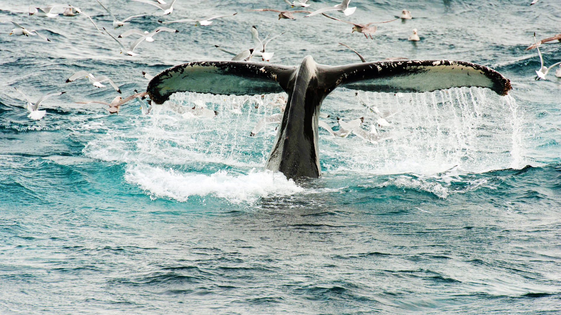 The humpback whale only eats during half the year. The rest of the year it lives on its own fat reserves. During the bright summer months, it moves to the far north or south to feed, and during the winter it moves to warmer waters around the equator.
