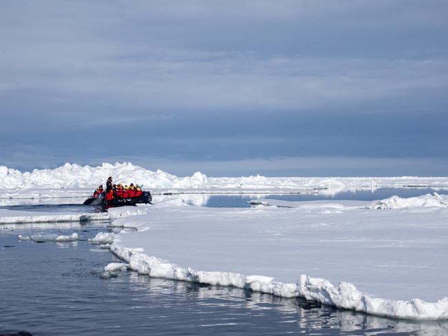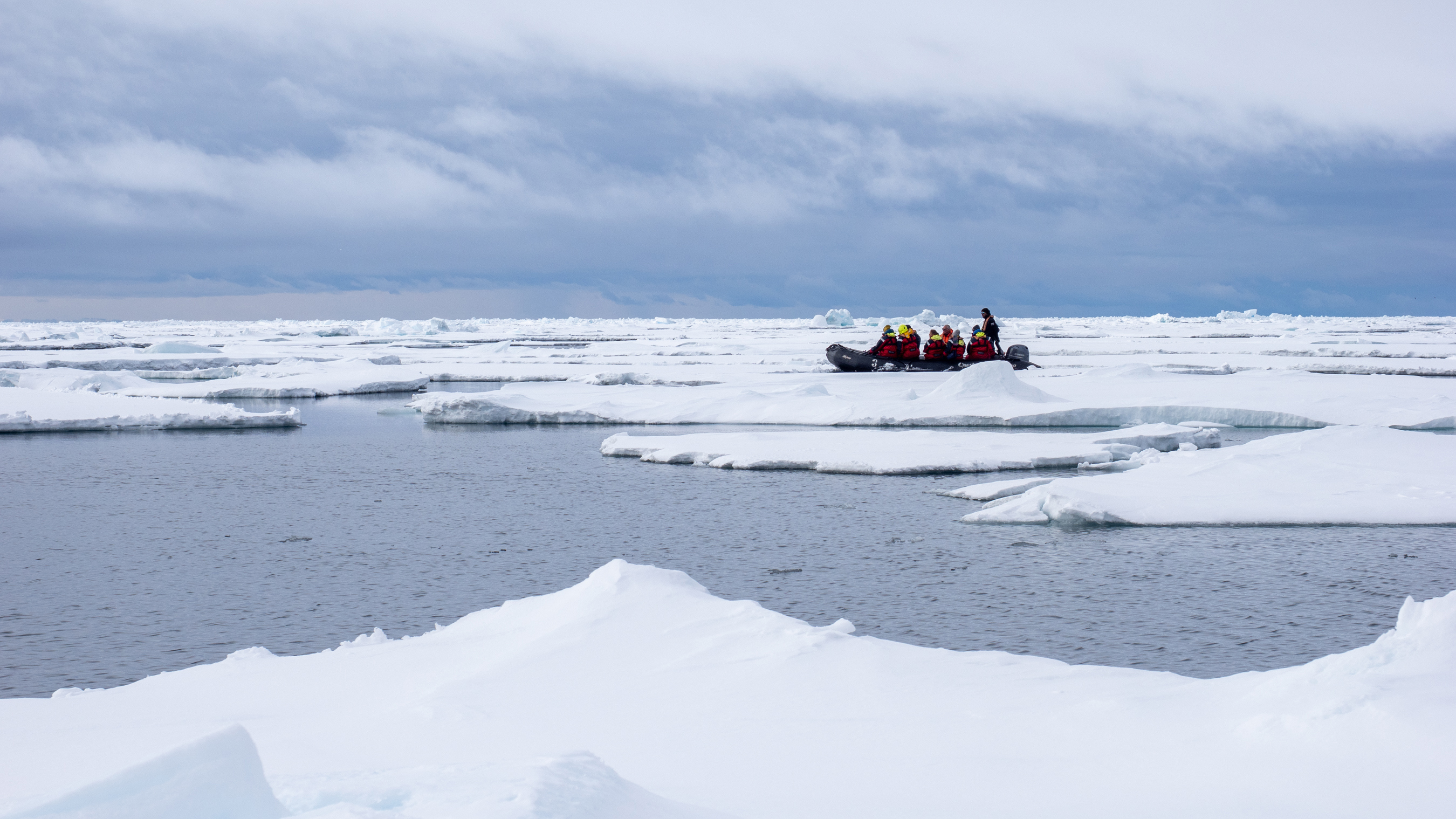 Once the excitement faded and breakfast was behind us, it was time to prep for the morning Zodiac cruise. We couldn’t have asked for better conditions—crystal-clear skies, no wind, and dazzling light bouncing off the sea ice. I drove one of the zodiacs, weaving carefully through the ice floes, always scanning for wildlife.