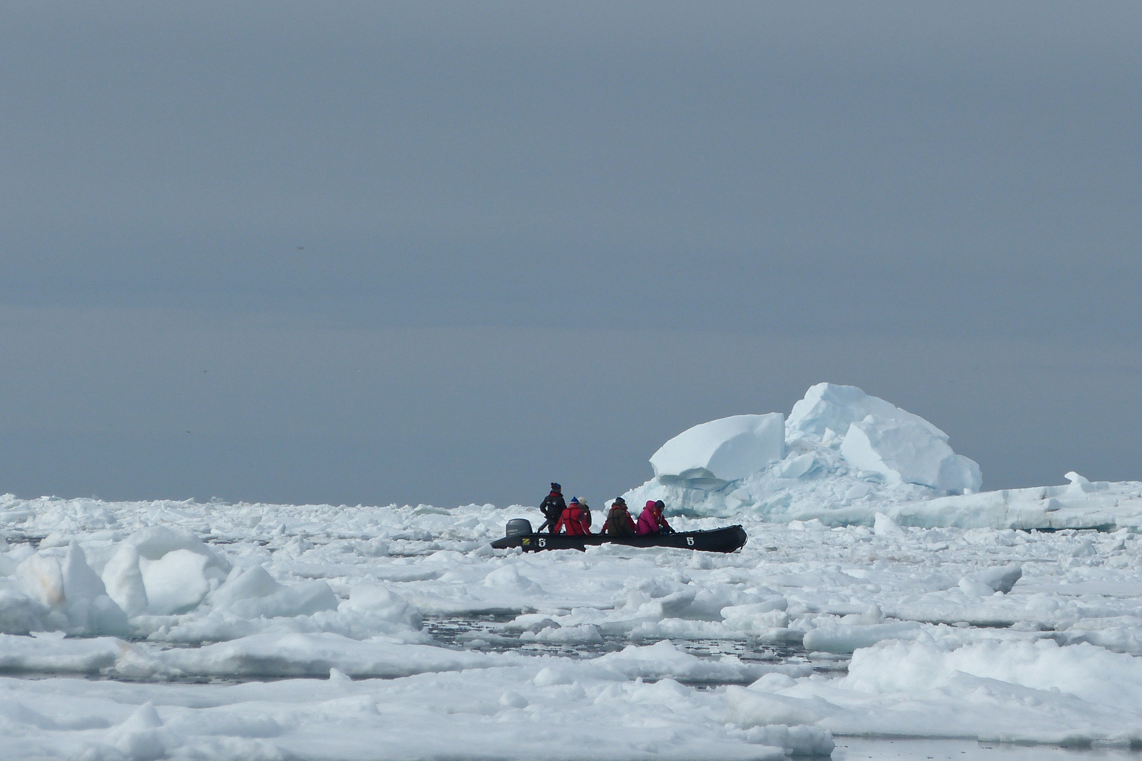 Before we knew it the bridge had spotted a polar bear on the pack ice and quicker than ever we were back at the ship to have a closer look at the bear. She was hunting for seals and it was eventually successful! And then, as this wasn’t enough, we saw another polar bear in the far distance. With this very satisfying morning behind us we set sail again. In the afternoon we enjoyed a stunning cruise among the sea ice. We explored the ice and enjoyed the silence. A brave bunch of us also explored the sea ice by standing on top of it. We cruised through the ice like in a labyrinth and we could see how large some of the icebergs were underneath the surface.