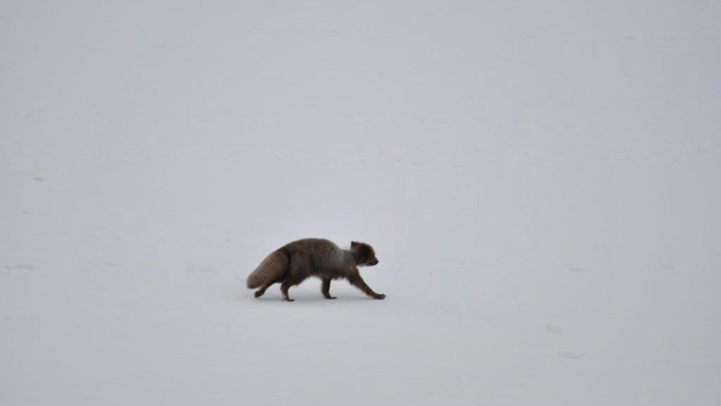 As we took in the silence of Svalbard, our friend the blue fox appeared again. Between the rocks of the rocky slope, it jumped out and we could follow it across the slope. In Svalbard, there are Arctic foxes with blue-black fur and Arctic foxes with white fur.