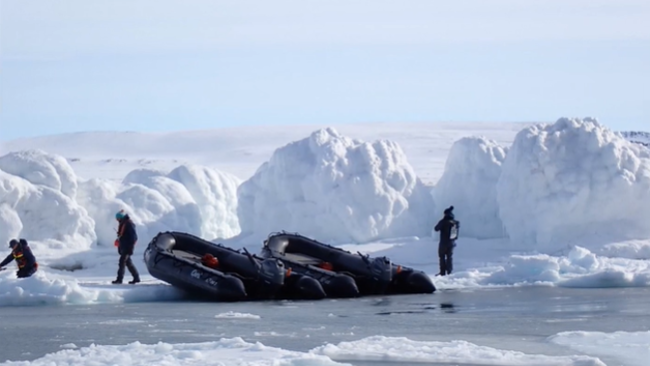 At nine o'clock on the seventh of May, we got into the Zodiacs and set off on the day's excursion in Hamilton Bay. The Zodiacs give us good opportunities to explore nature and animal and bird life in bays that are too shallow for M/S Quest to enter. The morning had started well with a blue Arctic fox running across the ice during breakfast time and we all felt an excitement to head out into the cold landscape.
