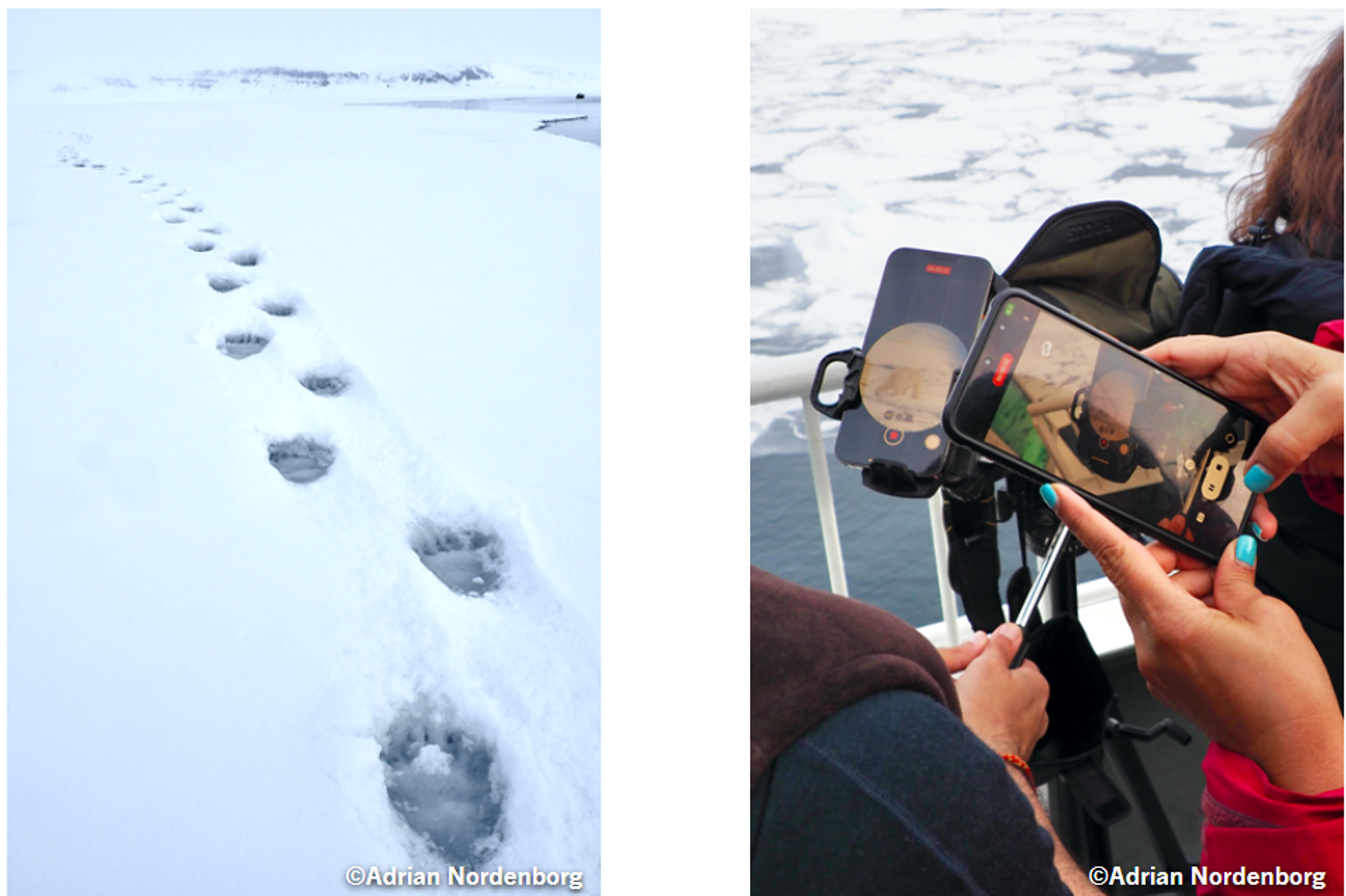 But the adventure was not yet over. Just when we thought we had seen it all, we came across another polar bear chasing a Svalbard reindeer off a cliff. The bear threw itself after the reindeer, which tried to escape into the sea, but the bear was right behind it.
