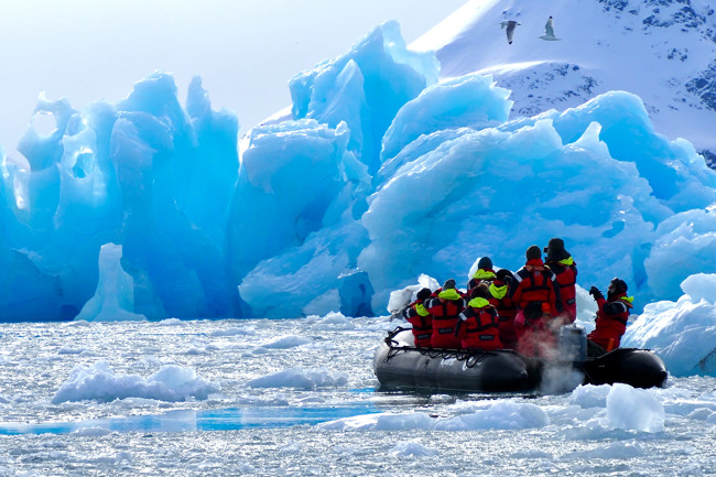 We explored more fjords and it was like gliding around an art gallery as we admired the beautiful blue glaciers and their associated icebergs.