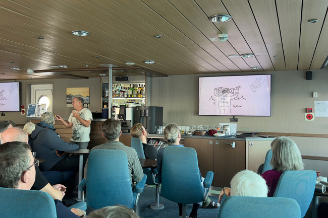 Not only during lectures, Doug knows how to captivate us with his inspiring stories, he also finds the time to mingle with the guests and, where requested, give tips and tricks during, for example, the Zodiac cruises or a walk.