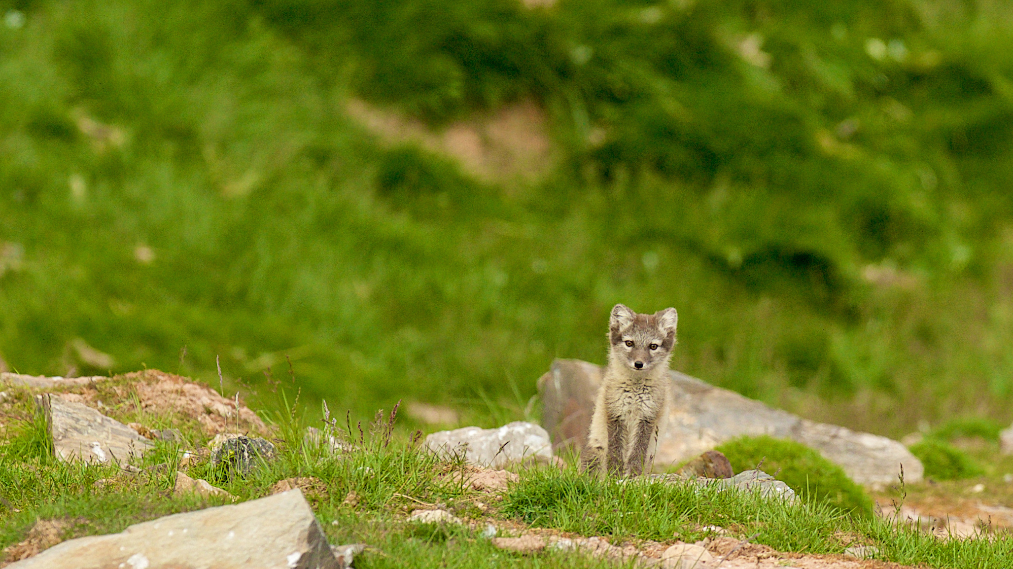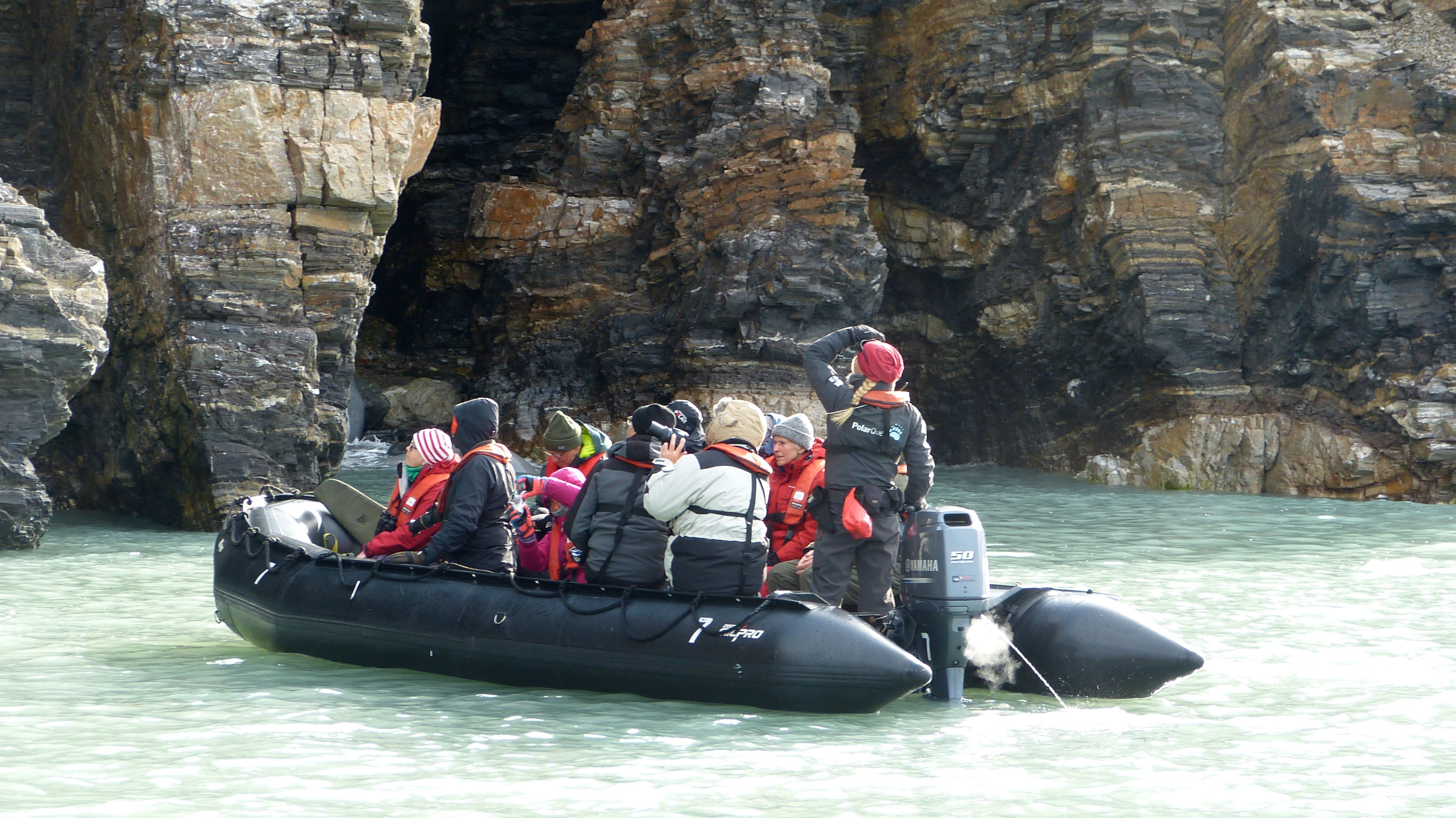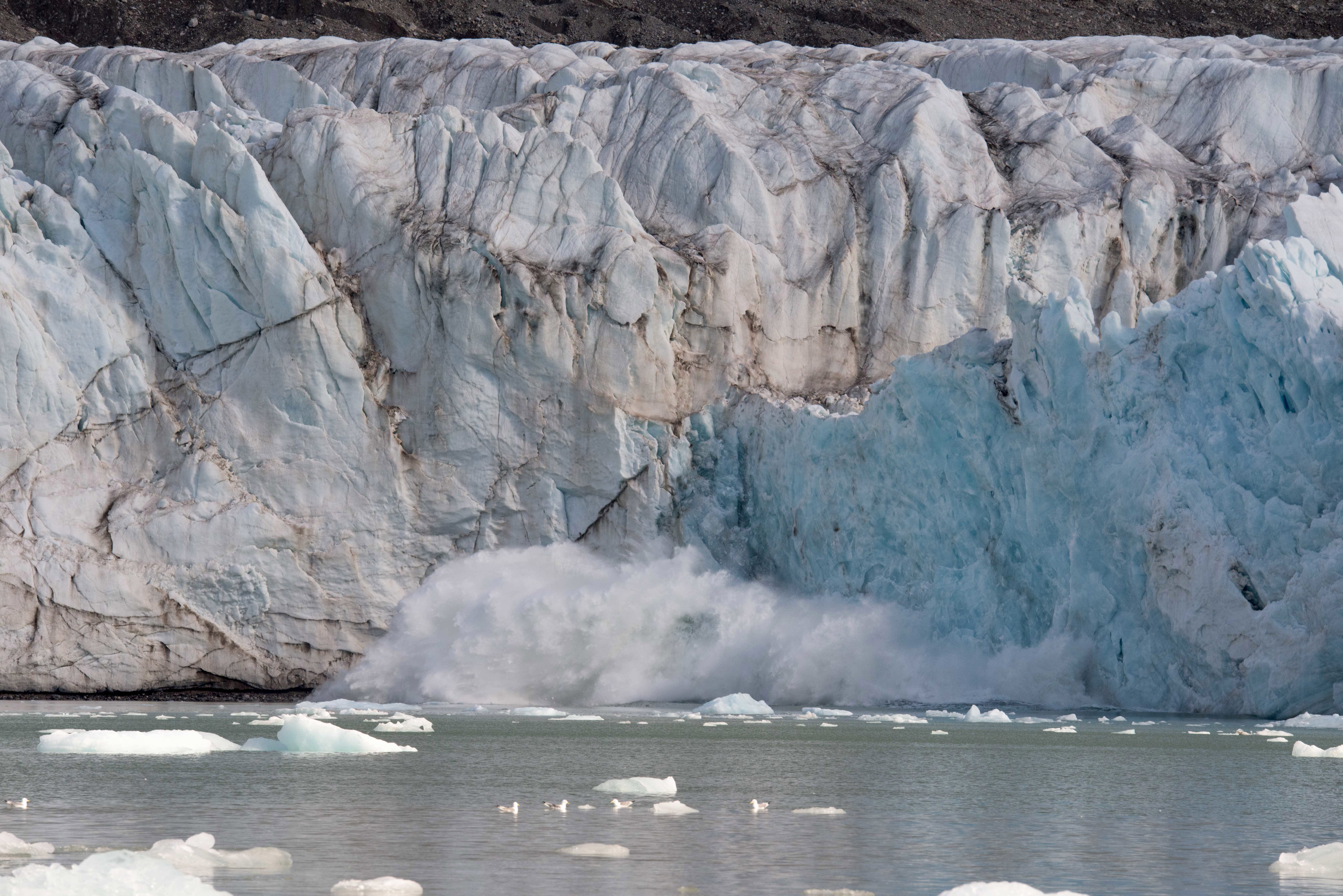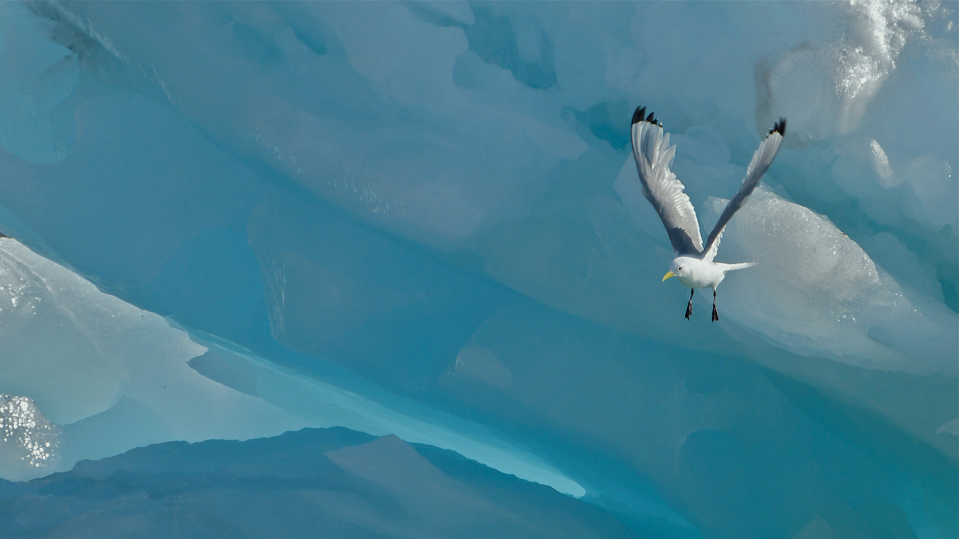 We woke up to light winds and only slight overcast as we entered Krossfjord on our way to the beautiful Fourteen of July glacier. A light rain was falling as we entered our Zodiacs but soon the whole bay was bathing in sunshine. Brünnich’s guillemots, glaucous gulls with chicks and the charismatic puffins were nesting on the bird cliffs. A handful of reindeer were grassing on the lush tundra to the sound of the kittiwake colony above. The silence in the Zodiacs while cruising the glacier front was only disturbed by the cracking of ice, but suddenly we witnessed a massive calving – what a powerful experience!