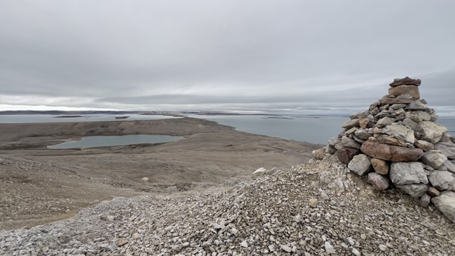 With the group that chose the long walk, we set off across the well-formed elevated beaches and along ridges filled with Svalbard's oldest fossils, including Stromatolites. We continued to the top of Kinnberget, which stands at 128 meters high, offering a stunning view over Murchinsonfjorden and Oddneset. We took our time to rest and soak in the beautiful scenery.