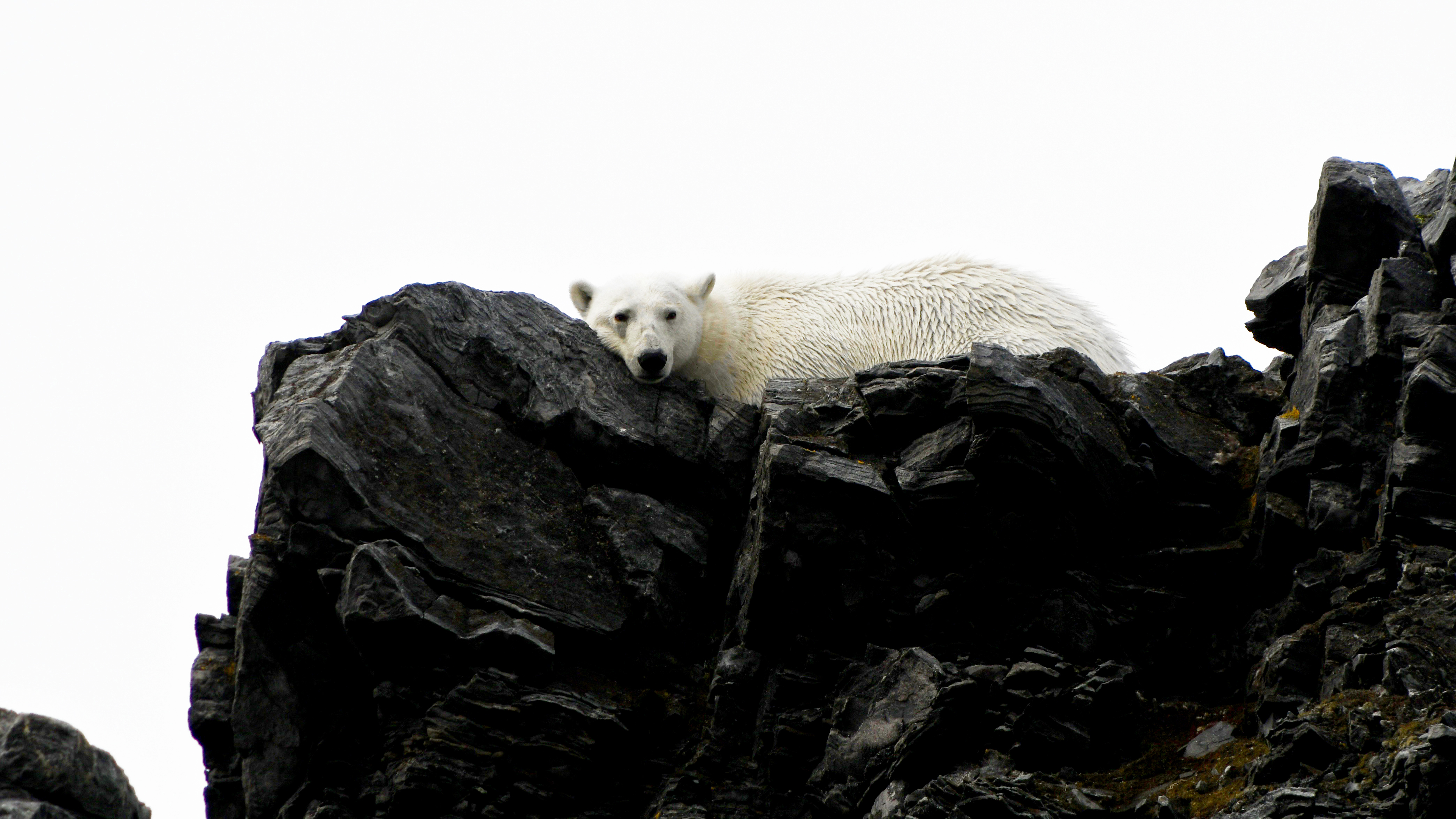Already before breakfast can we see the spectacular shape of Karl XII Island appear through the mist. As we set anchor a few hundred meters from the shore line there are two polar bears walking along the shore, apparently just as excited about us as we were about them. After breakfast, we put our Zodiacs into the water but because of the polar bears without any landing as earlier planned. At the very start of our Zodiac cruise we spot a group of walruses in the water as well. The mist vanishes and reappears, but we manage to circumnavigate the island. We see more walruses and altogether four polar bears along the rocky shoreline.