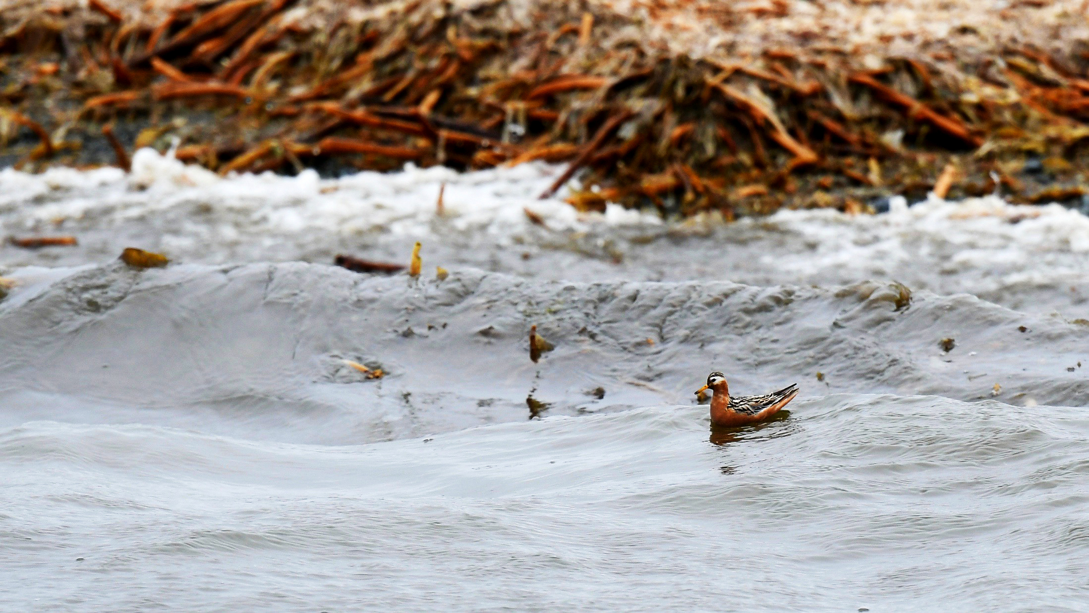 After lunch, we head east towards Storøya, which despite its name is quite small. As we approach the island we once again spot polar bears on the shore, and our landing once again must be cancelled. Instead we go for a Zodiac cruise along the coast to watch a couple of walruses and a beautiful red phalarope.