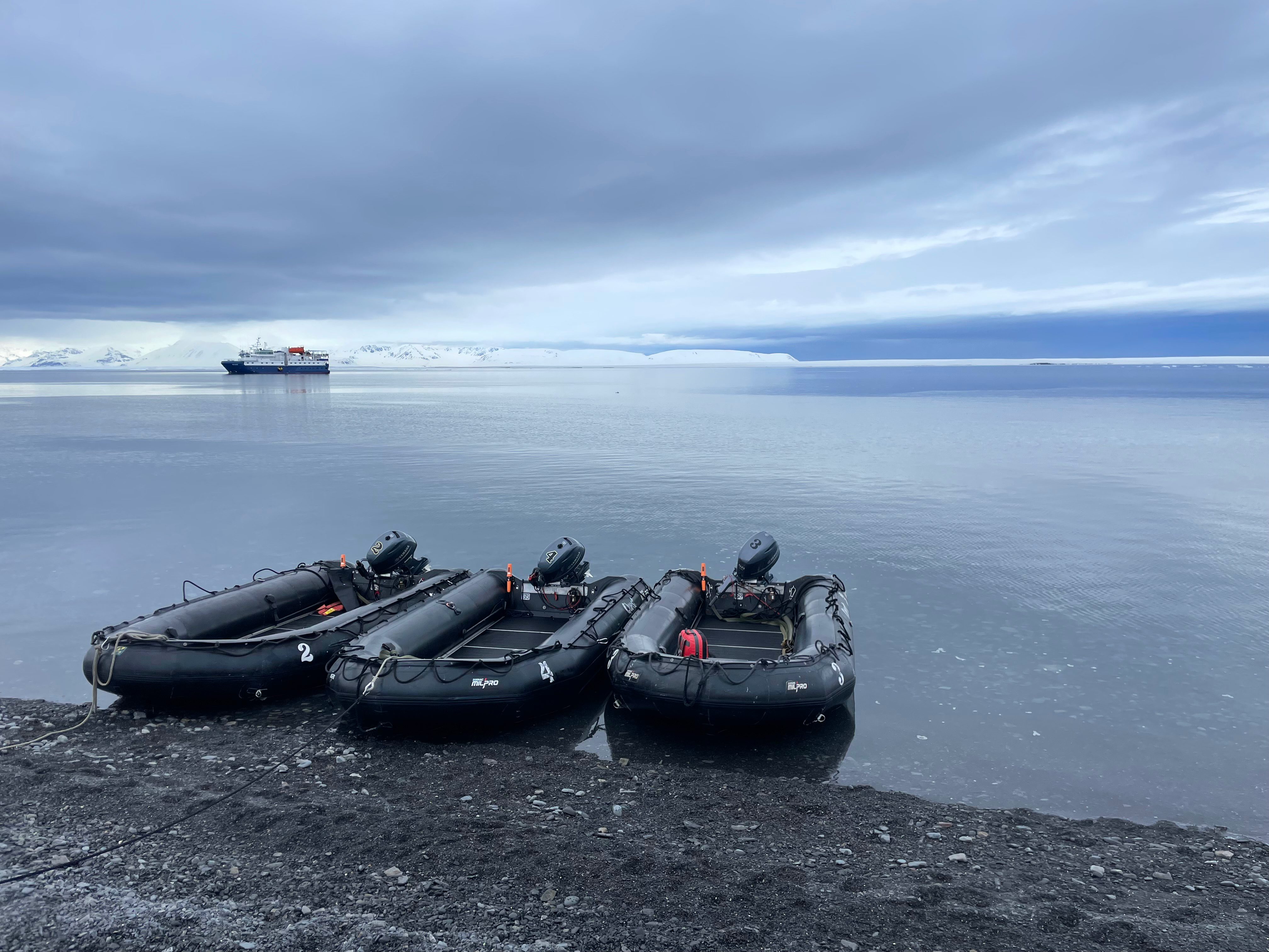 We landed and had the privilege of seeing fresh polar bear prints passing the cabin area - pawprints from a mother and cub. After inspecting the tracks and sharing a local tale or two, we went for a hike along the shoreline. We saw reindeer and ptarmigans and finished the landing by picking up trash along the shoreline.