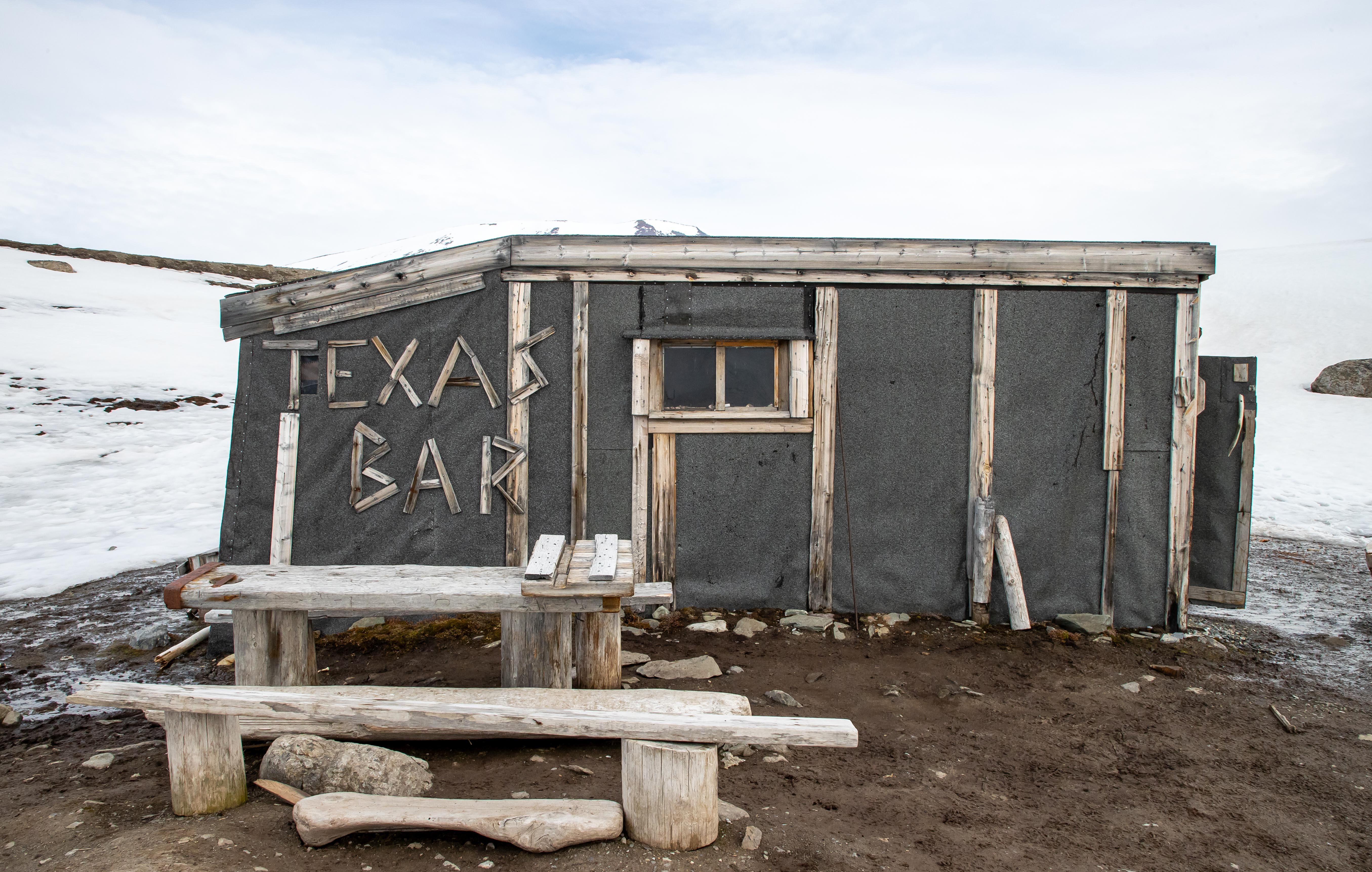 Today, as a contrast to yesterday morning, we woke up to blue skies and sunshine. We landed in a small bay in Liefdefjord, next to “Texas Bar”, a traditional trappers cabin built by Norwegian trapper Hilmar Nøis in 1927.