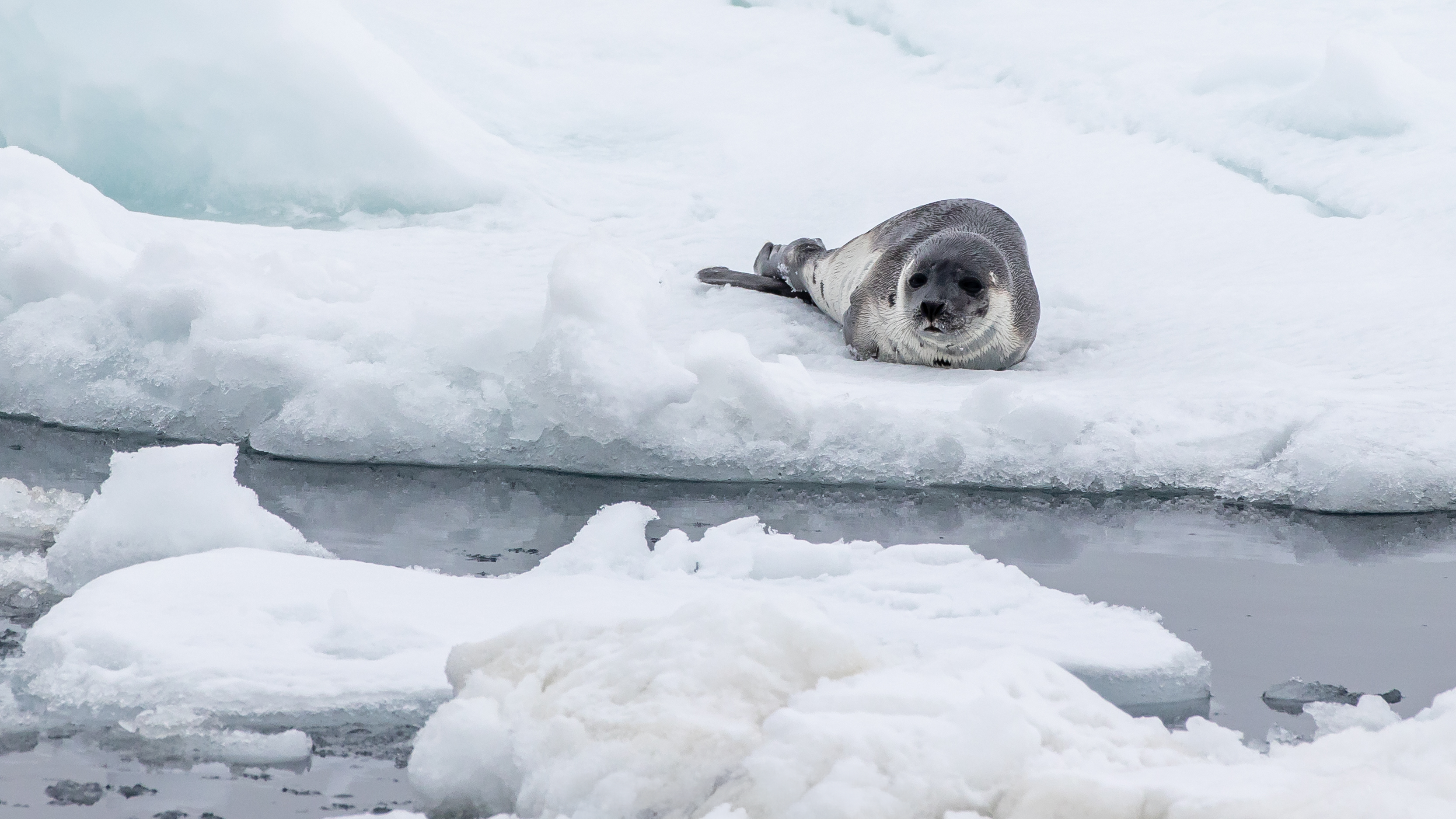 The closer we sailed to the ice edge, the calmer the wind became, and this meant that, as is normal in the Arctic, the fog came too. Amongst the ice, we saw plenty of black guillemots, brünnich’s guillemots and little auks feeding away. During lunch, the fog lifted significantly, and this meant we were able to head out into the zodiacs, and we were exhilarated to find a large stable sea ice flow that we could land on, before getting back in the zodiacs and finding bearded seals resting on ice flows. This wasn’t enough excitement for everyone however – and the bravest souls swapped out their insulated zodiac suits for their swimwear and leapt into the (literal) Arctic Ocean.