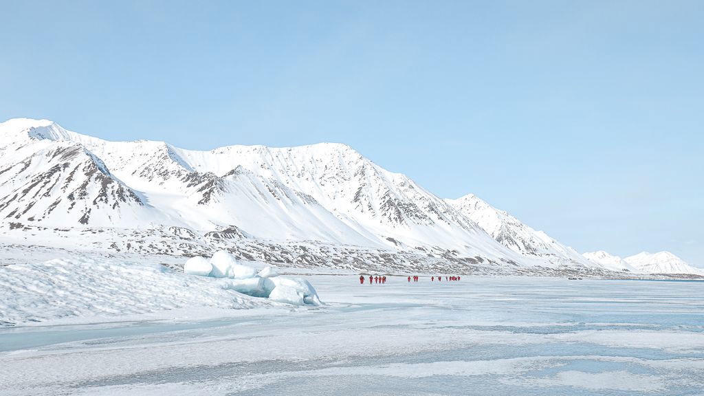 The next morning, we started with a Zodiac trip to the Ossian Sars Nature Reserve. We landed on the ice and walked to a part of the glacier to practice ice walking. Afterward, we spotted a bearded seal and its pup. We also observed numerous birds and some glacier snow that shimmered with the color of opal.