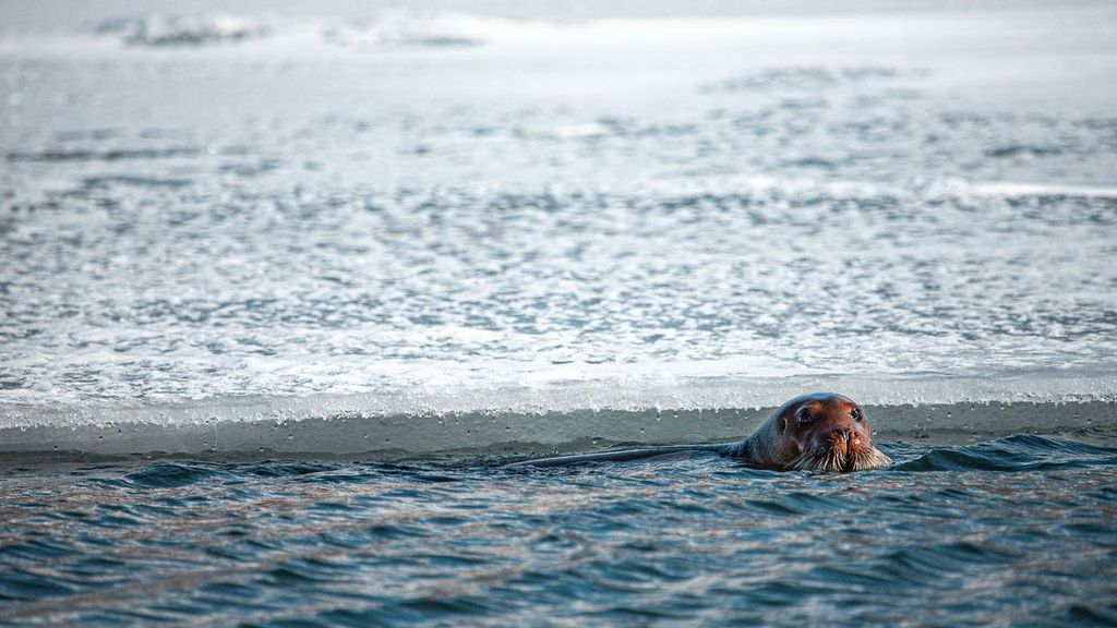 We woke up to beautiful weather and time for our first excursion! We went on a 3 hour Zodiac cruise and managed to see lots of walruses on the ice and in the water. Also a polar fox and lots of birds like king eiders and at the bird cliff kittiwakes and Brünnich's guillimonts.