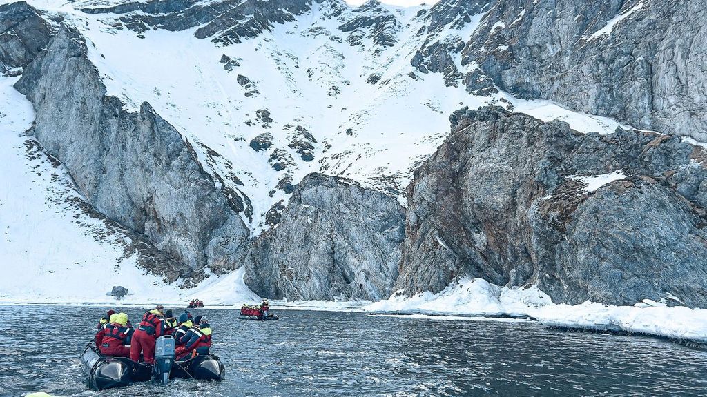 After the polar bear encounter, we went out with the Zodiacs to do a landing and get a bit closer to the Midterhuken Glacier.