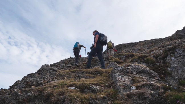 Here we did a rather long walk to the very top of FlakMountain, with a view that is worth every drop of sweat shed - glaciers on glaciers in-between tall rugged peaks. Camp Zöe is an old trappers cabin located in Krossfjorden, an area filled with centuries of history, a lot to both look at and talk about. Almost everyone did the long hike and got to enjoy the view of the vast landscape on the top.