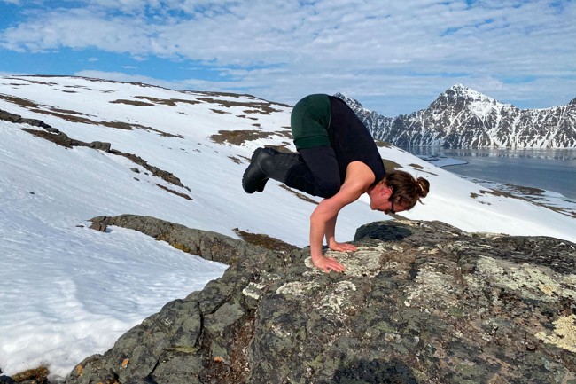 It's hard to imagine anything more relaxing than doing yoga on a sun-warmed rock overlooking snow-capped mountain peaks and a crystal-clear fjord where the sky paints the world upside down. The experience is also enhanced by the feeling of facing nature with a mind that is unaffected by the constant stream of information that characterizes today's society.