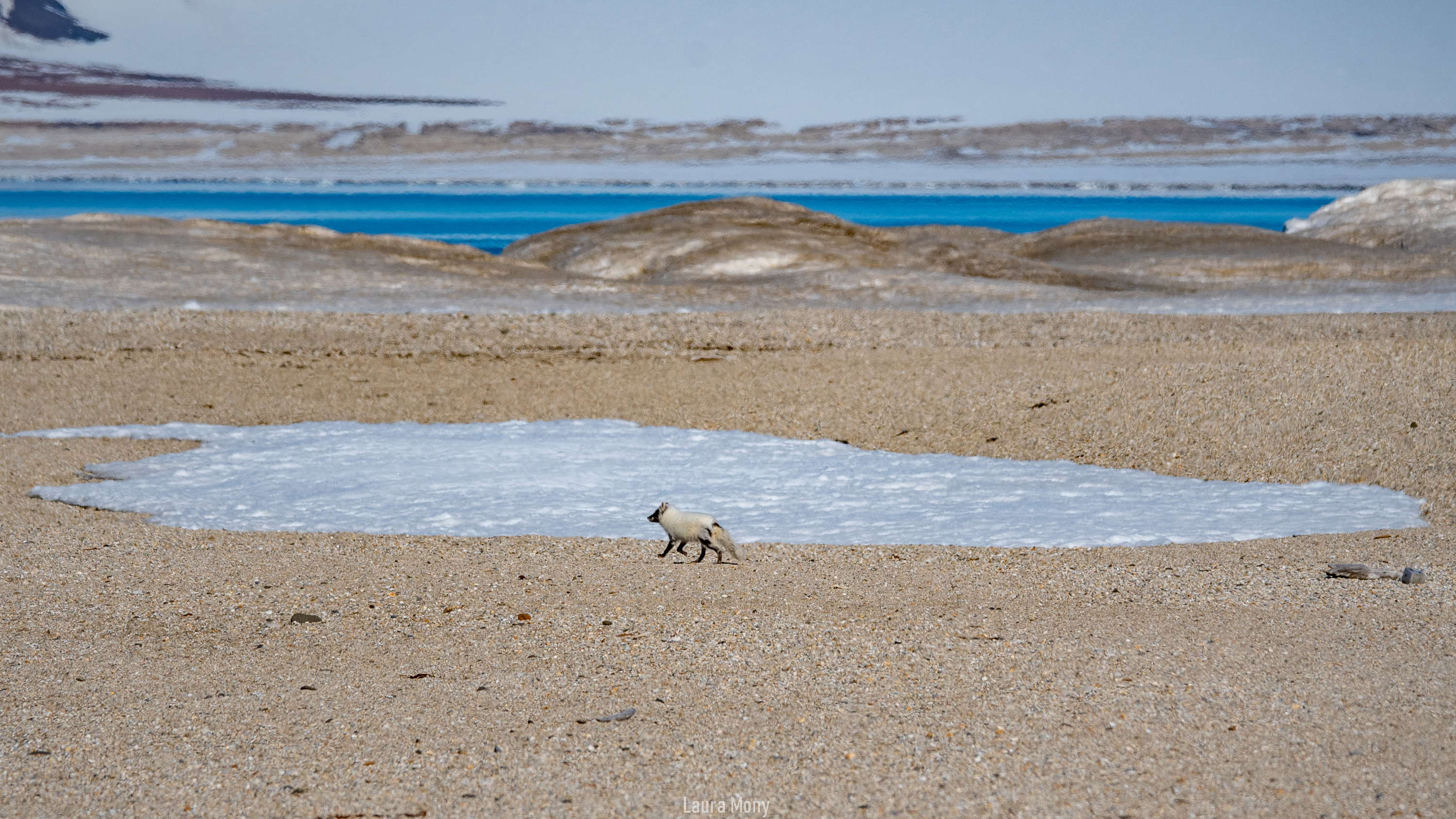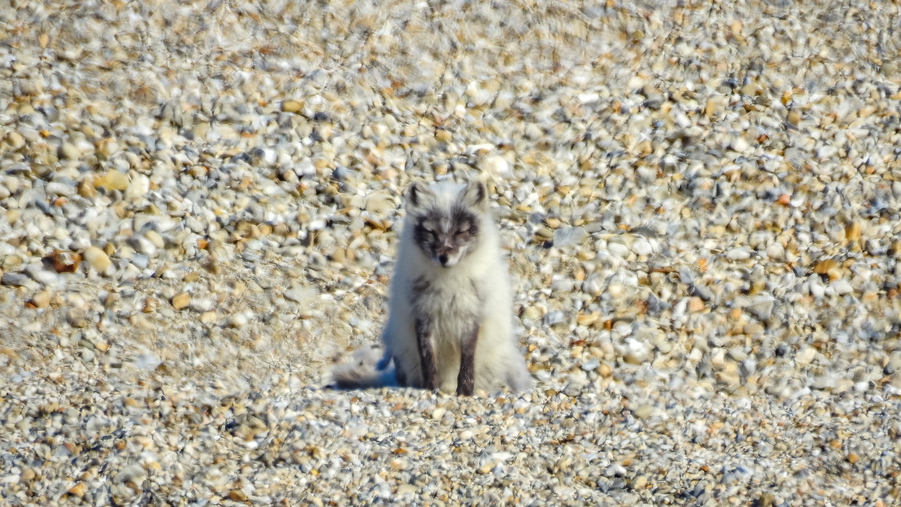 As we quietly approach, an Arctic fox showed up behind the hill. This little fox was shedding his winter fur and was a good mix of white and brown. He curiously made his way towards us before running in different direction. What a sighting and our guides explained to us that foxes’ sightings are even more rare than Polar bears.