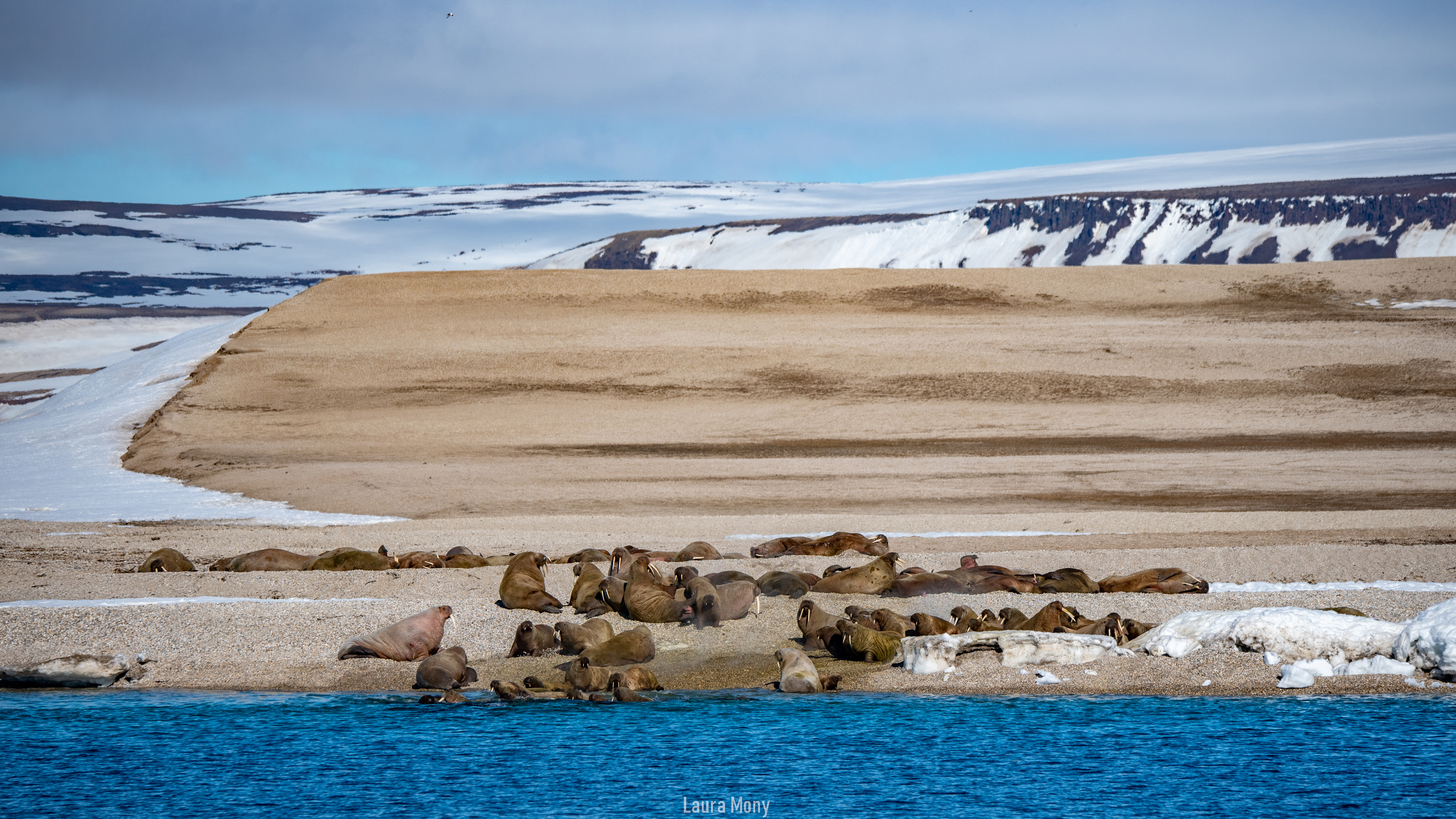 After this show, we made our way toward the walruses, probably more than forty laying on the sandy beach. It is their favorite environment as their food source, clams, is leaving in the sand, underwater. They can eat up to 70 kg of shellfish a day and the smell is a good reminder of it.
