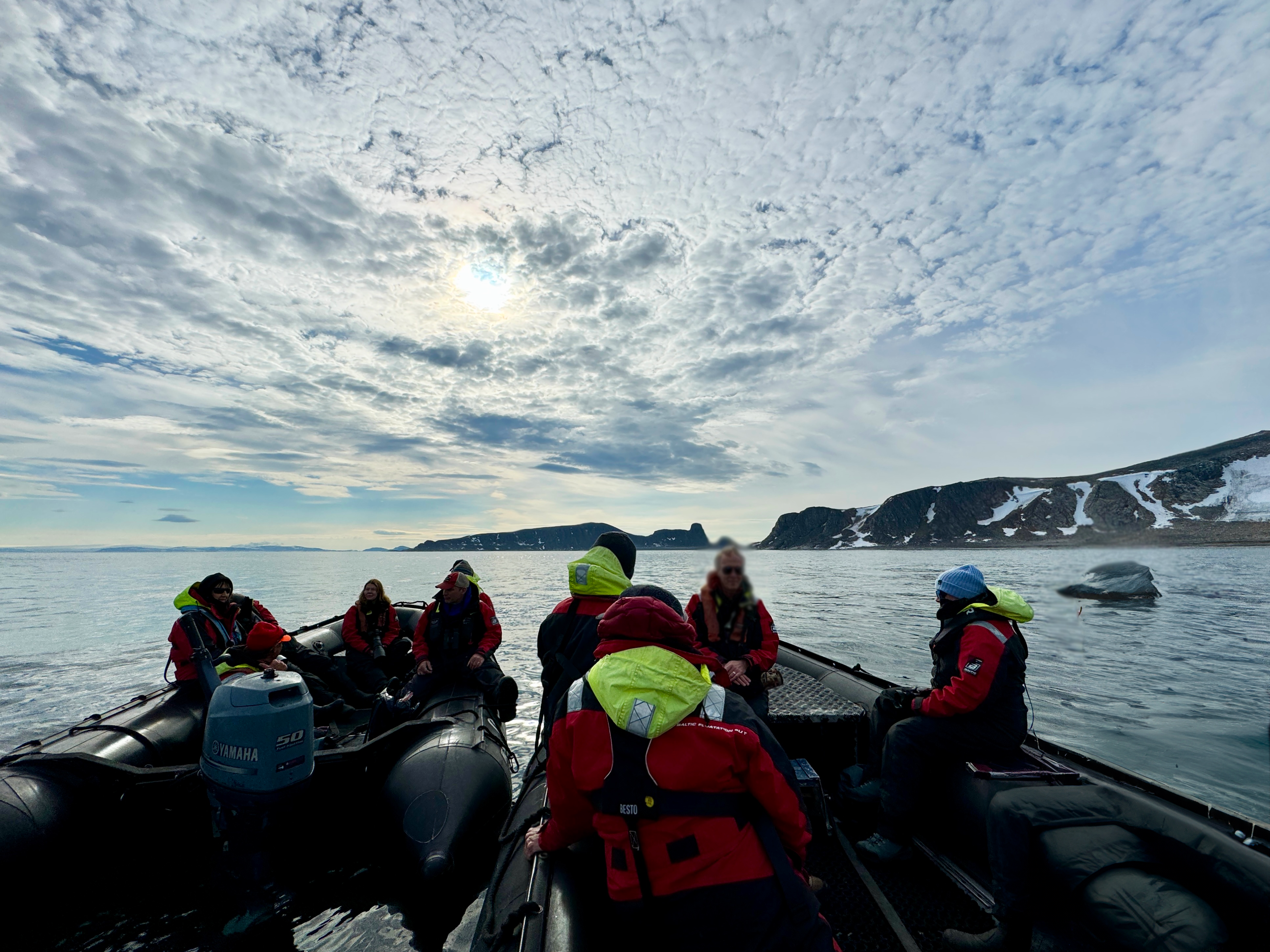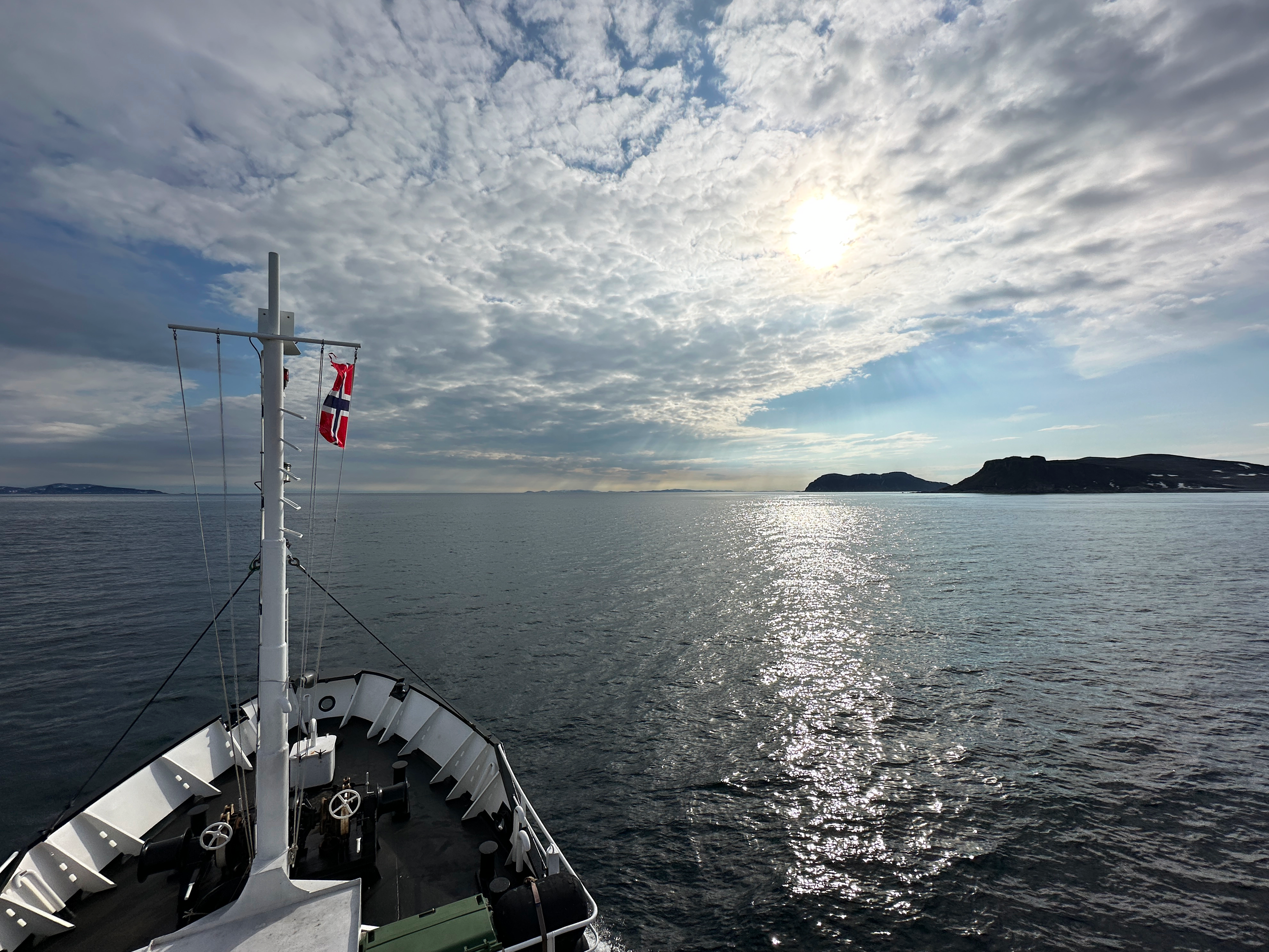 We sailed through the Seven Islands towards Isflakbukta on Phippsøya, the ocean was glossy calm and there were light winds. We were met by several groups of walrus in the water as we made our way further north.