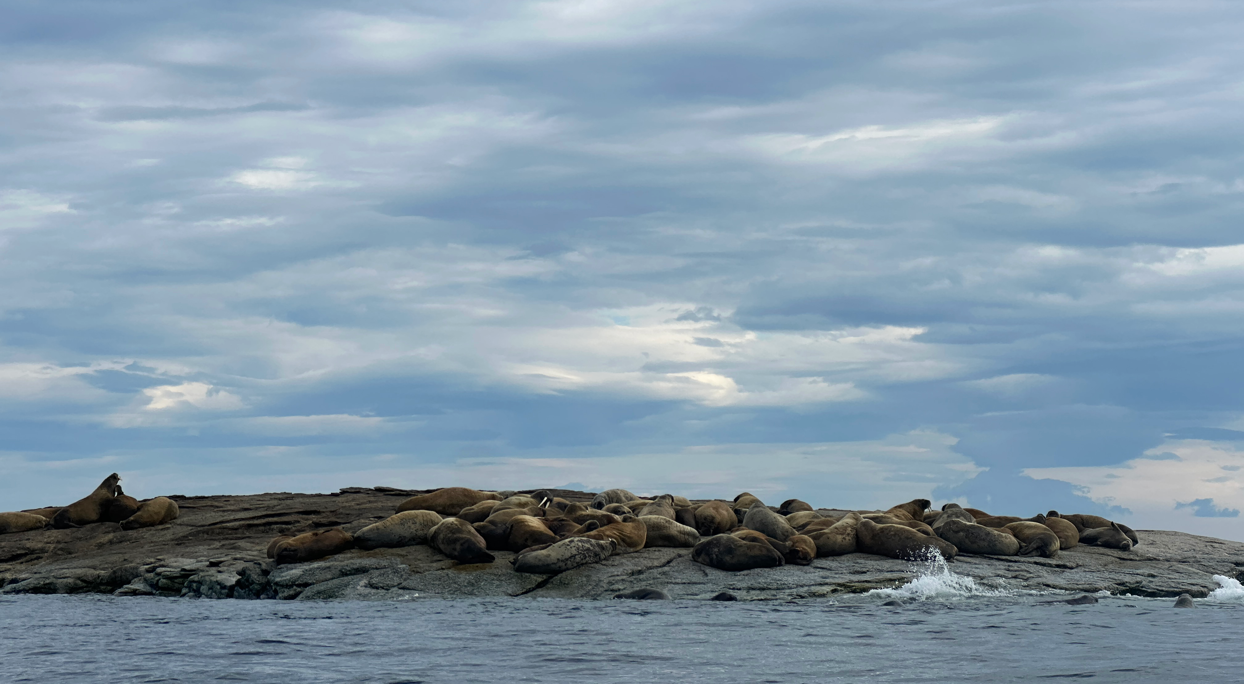We had lunch while at anchor and started getting ready for the afternoon excursion. We got into the suits and off we went towards Skrikholmane where there were at least 50 odd walrus hauled out on the low lying islets.
