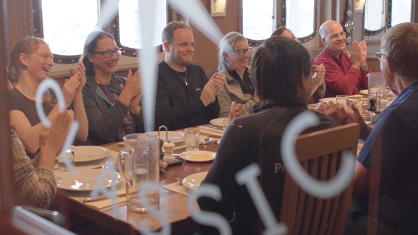 In the ship’s combined dining room and lounge, which accommodates all 12 travellers, you will enjoy delicious meals between the excursions. A buffet is served for breakfast and lunch, while dinner is served at the table. It's also a place where you can listen to our guides as they share fascinating insights about Svalbard's wildlife, nature and history.