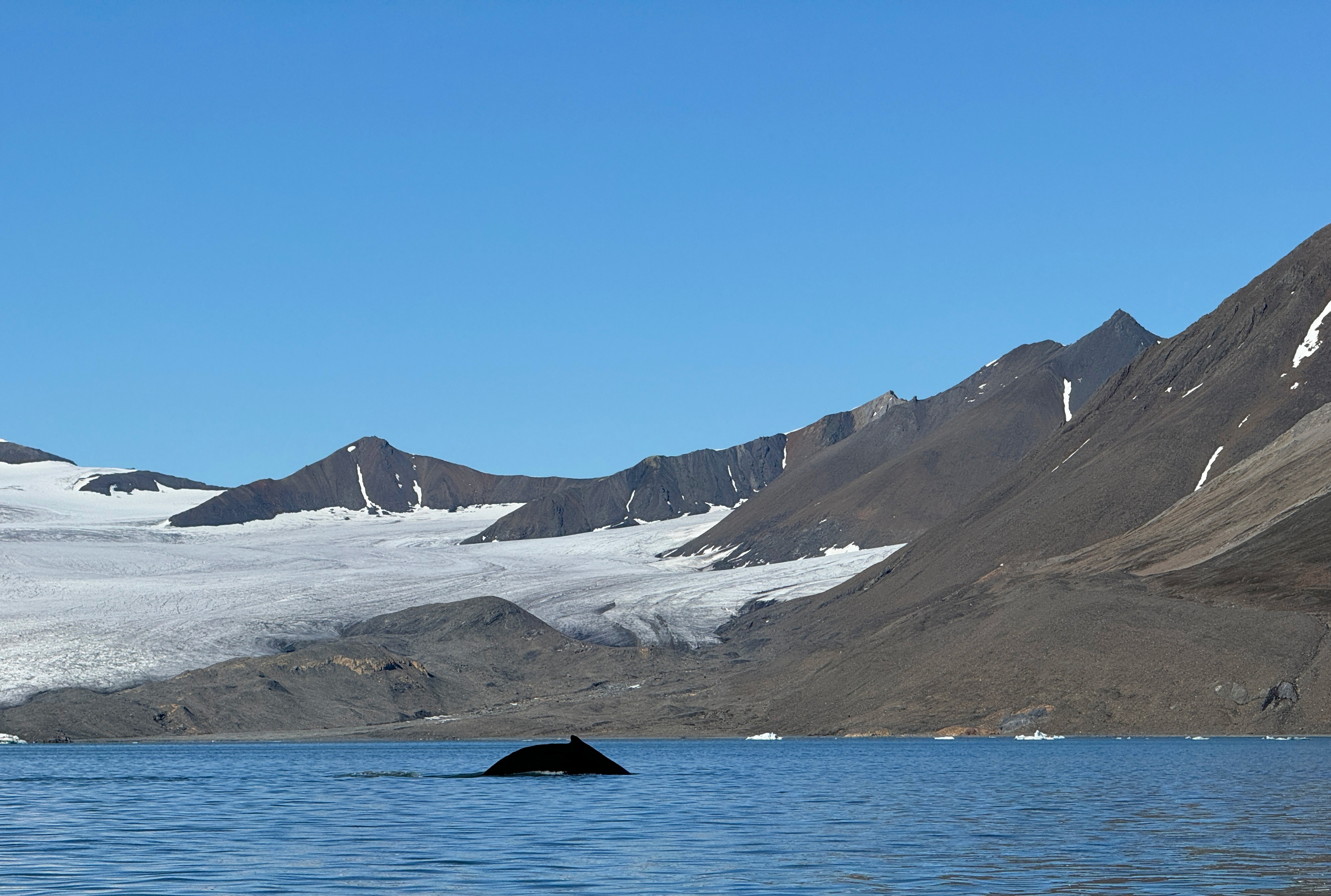 We were greeted by clear skies and calm waters as we sailed into St Jonsfjorden after some wind and fog which can be unusual together. The Zodiacs were lowered and on our way to the beach we saw a blow on the other side of the fjord. A Humpback whale! A detour was made and we got to see two humpback whales feeding not too far from the boat. Amazing start to the afternoon.